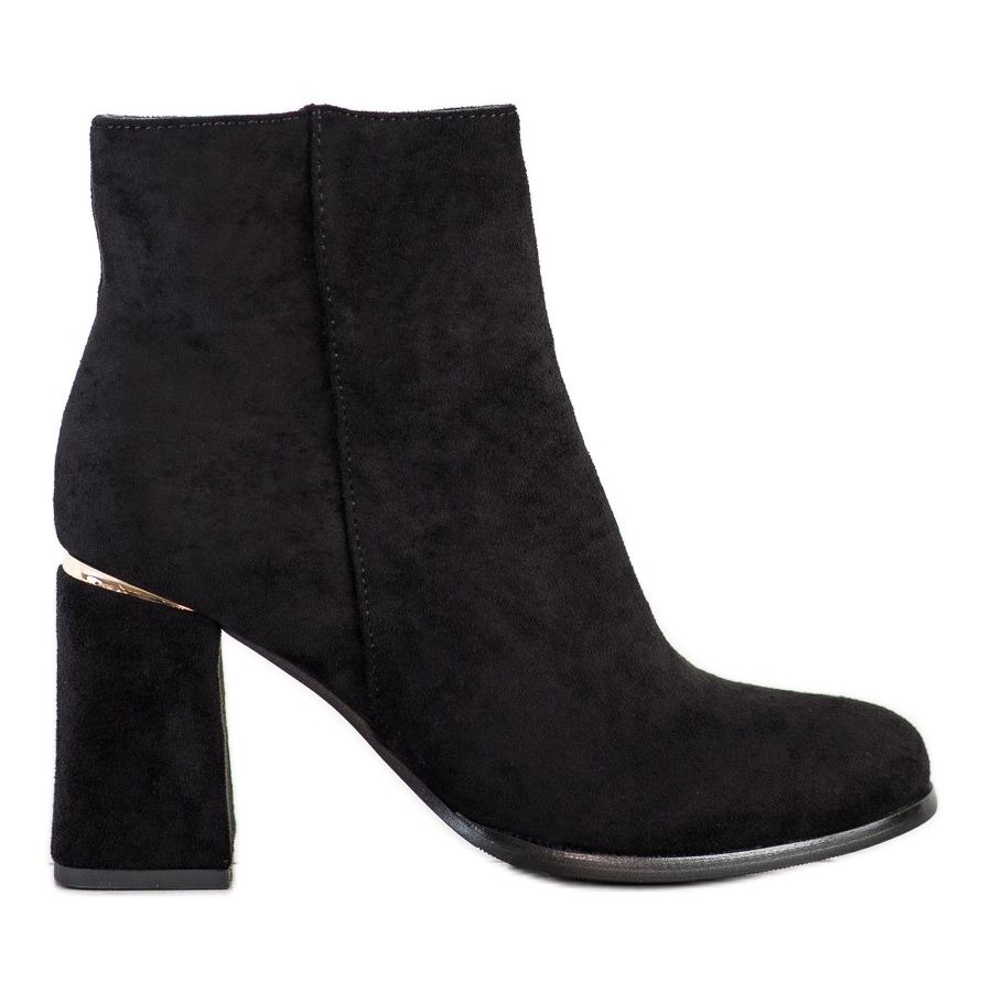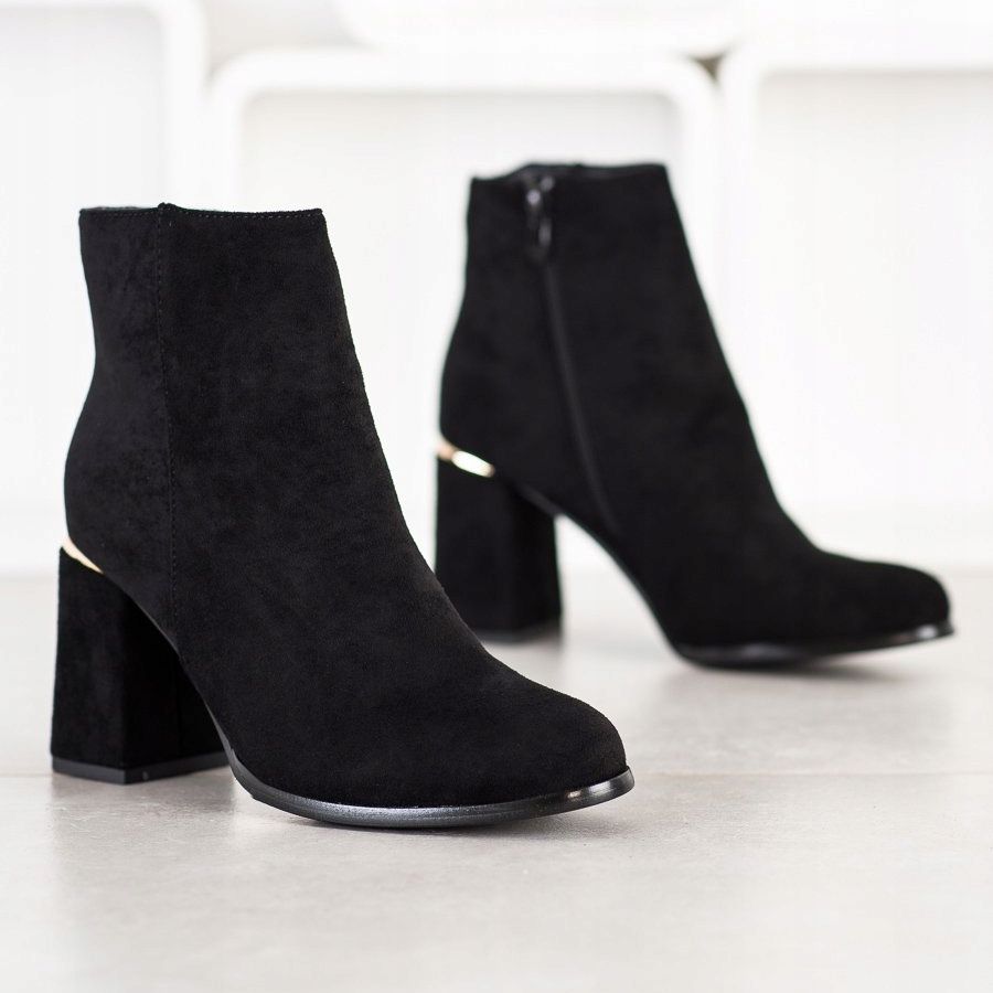 Botinele SHELOVET cu inserție aurie în negru sunt alegerea perfectă pentru femeile care caută încălțăminte elegantă și la modă pentru sezonul toamnă/iarnă. Confectionate din imitatie de piele intoarsa de inalta calitate si piele ecologica, garanteaza nu doar un aspect elegant, ci si confort la purtare.