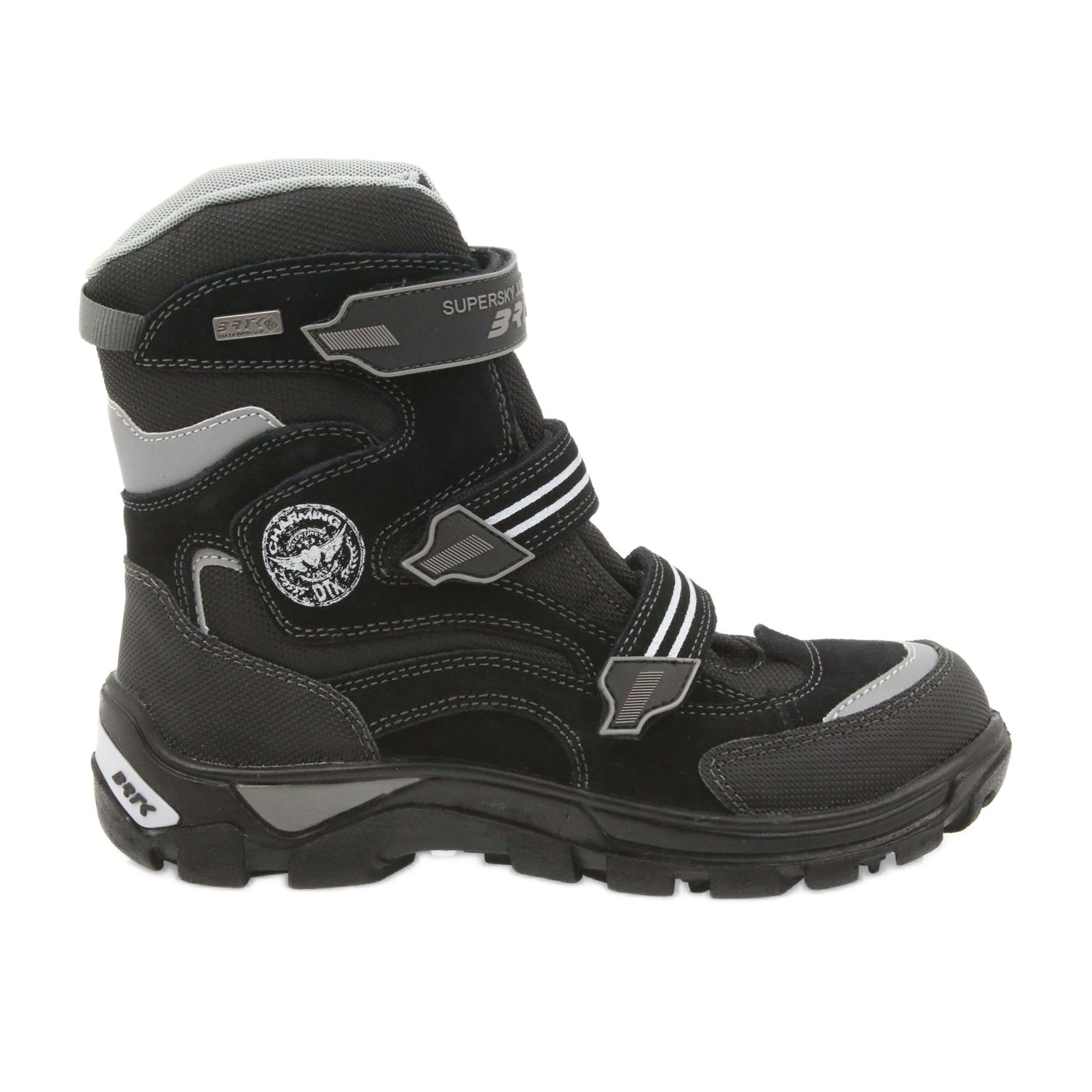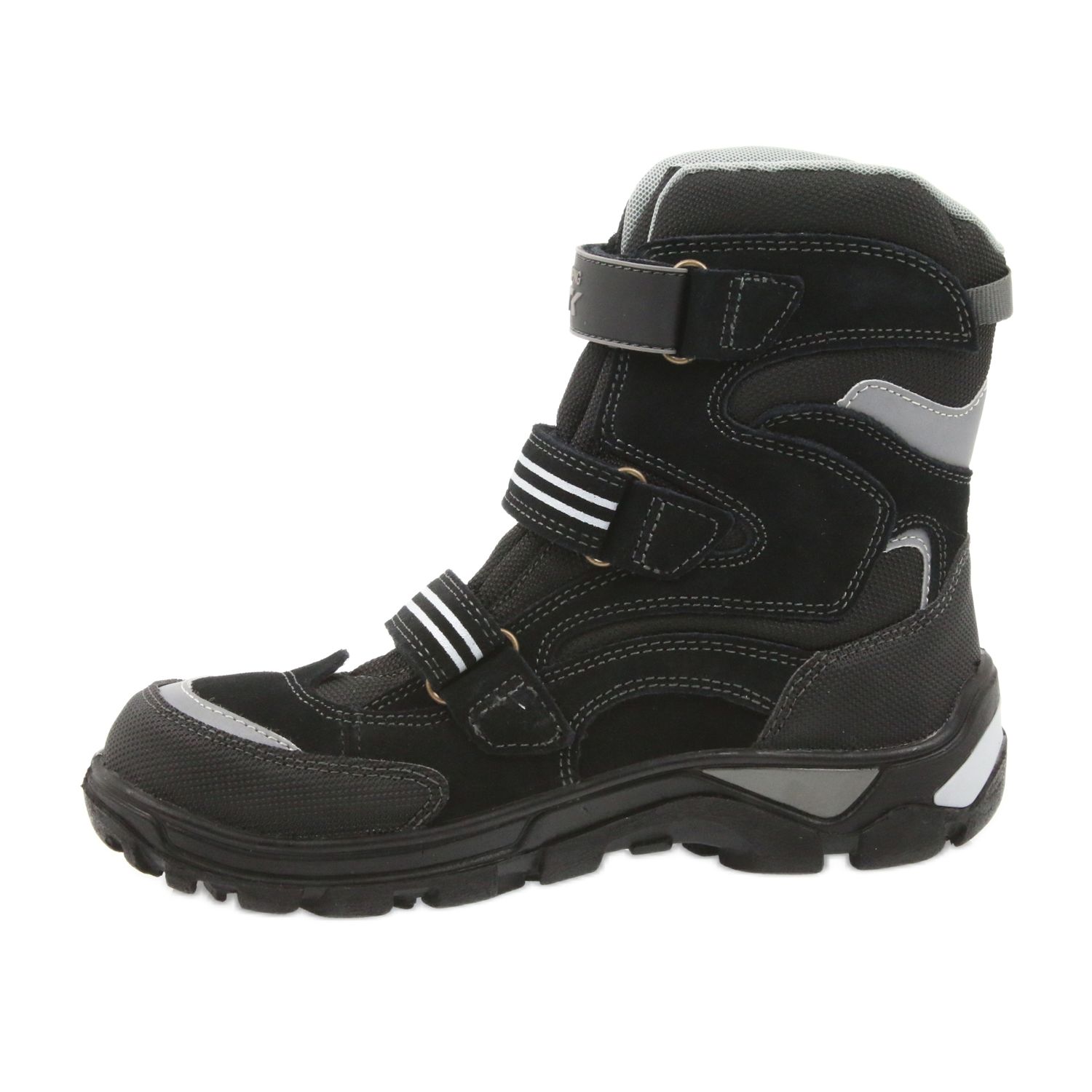 Cizmele negre cu accente gri nu sunt doar stilate, ci și practice. Realizate din piele naturala si material textil, garanteaza o ventilatie adecvata, iar interiorul izolat cu blana protejeaza eficient impotriva inghetului. Usor de pus datorita elementelor de fixare Velcro, copiii vor putea sa le planifice singuri, ceea ce le dezvolta independenta.