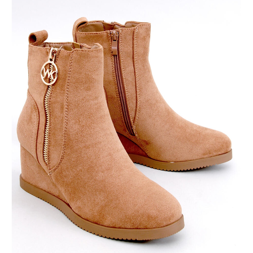 Inna marka Cizme cu pană de damă cu fermoar auriu cămilă maro