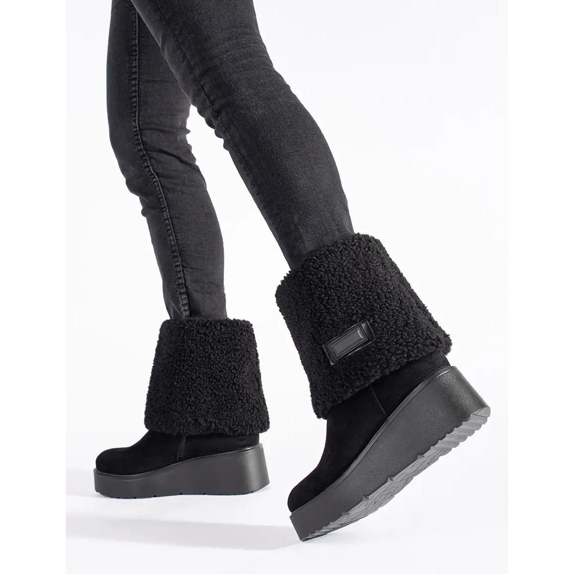 Proiectate pentru femei, aceste cizme se disting printr -un călcâi construit, care asigură stabilitatea și confortul purtării. Fabricate din piele de piele de căprioară ecologică, arată elegante și sunt ecologice. Interiorul cizmelor izolate este o blană plăcută care protejează eficient picioarele de frig, potrivit pentru toamnă și iarnă.