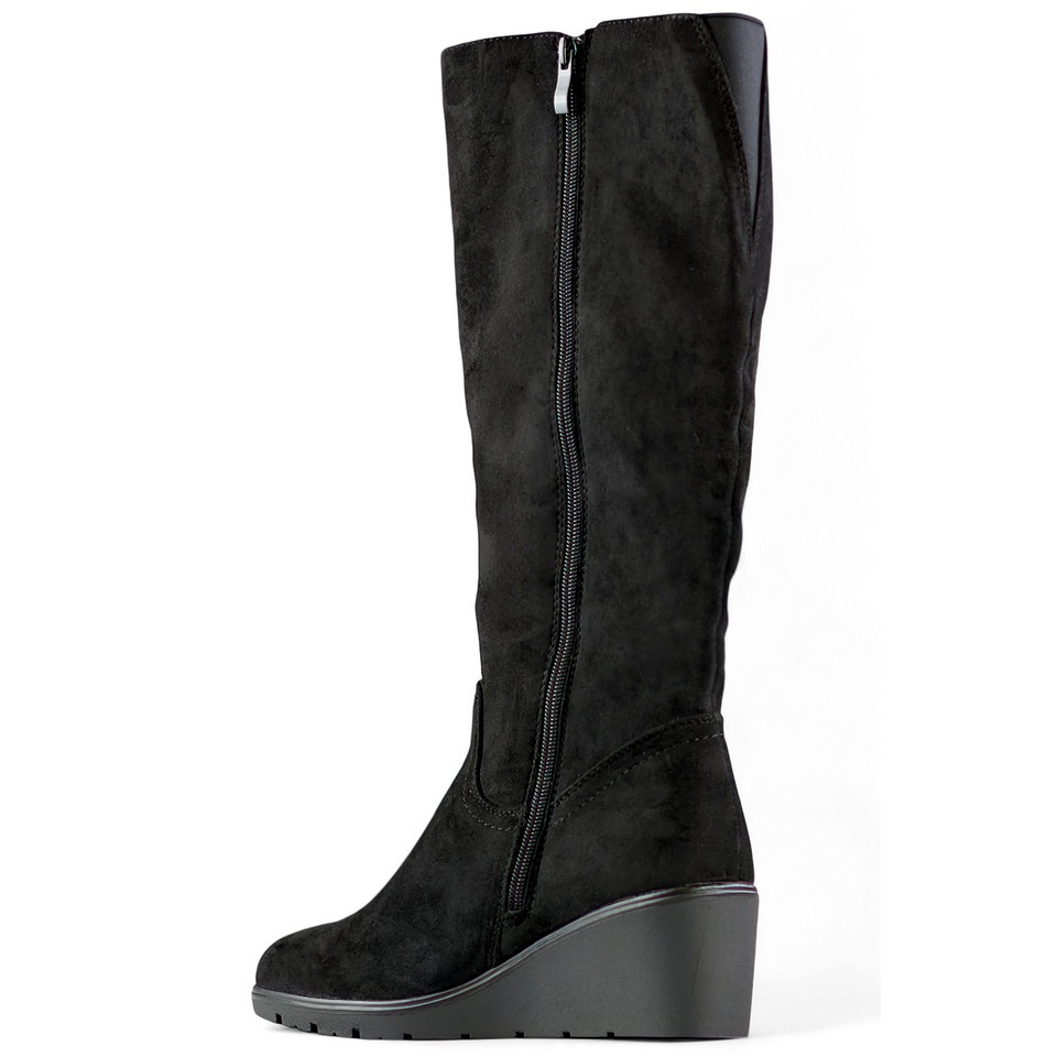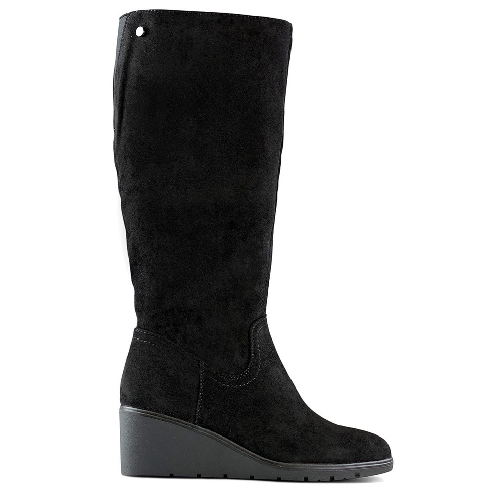 Aceste cizme nu numai că vor sublinia stilul dvs., dar constituie și o alegere practică pentru orice ocazie. Ambalajul original al producătorului le face ideale pentru un cadou. Alegeți cizme de piele de căprioară neagră sub genunchi și bucurați -vă de moda în lansarea Wedge!
