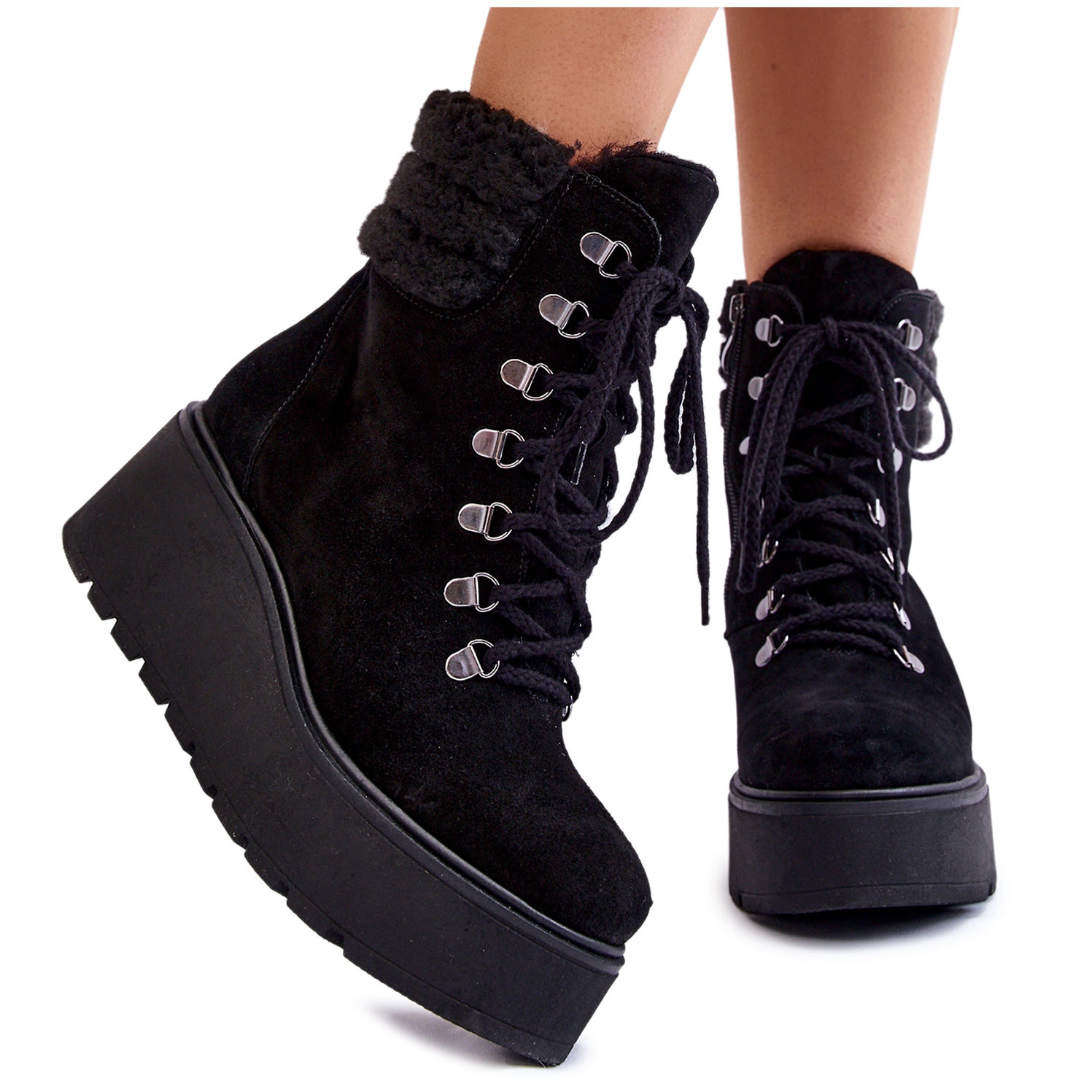 Clasic și, în același timp, la modă - cizmele Meniko negre sunt confecționate din piele naturală din piele de căprioară, cu atenție la detalii și confortul utilizării. Modelul combină soluții practice (Slider + Lacing) cu o construcție solidă: o platformă masivă și o pană oferă ușurința figurii, iar izolarea lânii naturale oferă căldură în zilele mai răcoroase.