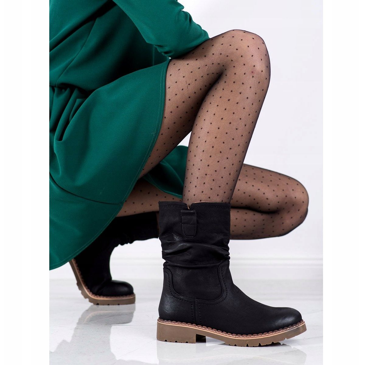 Descoperiți eleganța și confortul utilizării cu botinele Super Mode cu o parte superioară încrețită într-o culoare neagră intensă, perfecte pentru zilele mai reci. Aceste botine de dama, confectionate din piele ecologica de inalta calitate, imbina designul modern si caracterul practic.