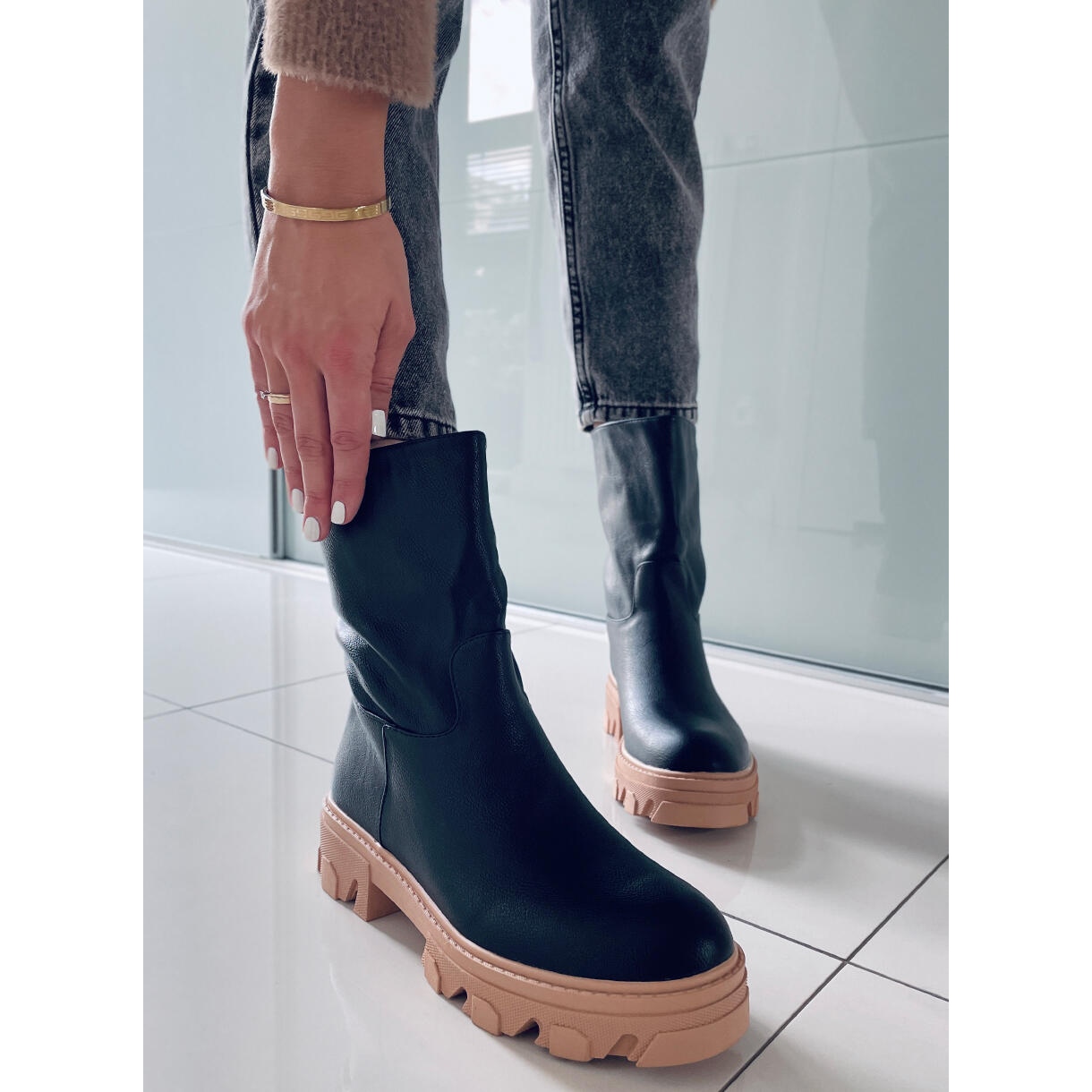 Cizmele BM Bunton BLACK cu partea superioară dreaptă sunt o alegere perfectă pentru femeile care doresc să îmbine stilul cu confortul. În acest sezon, aceste botine negre elegante sunt un must-have la modă! Datorită tălpii sale groase, acest model oferă nu numai o izolare excelentă, ci și confort la fiecare pas, ceea ce le face o alegere ideală pentru zilele mai reci.