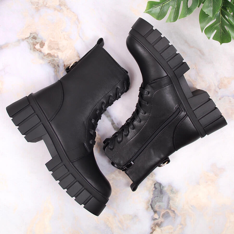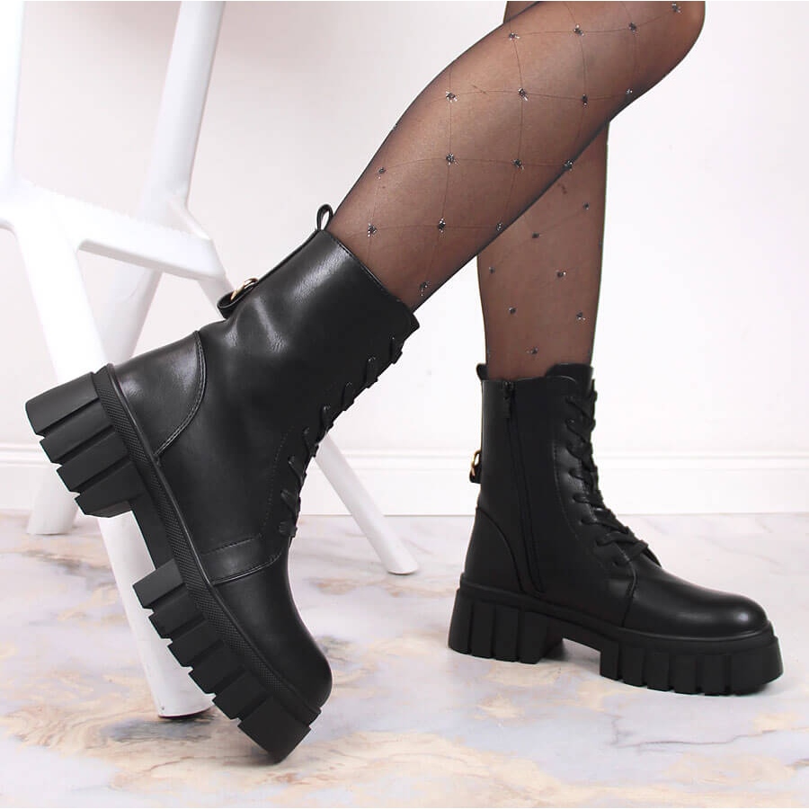 Aceste cizme, disponibile într-o culoare clasică neagră, se potrivesc perfect cu o varietate de stiluri - atât casual, cât și mai elegante. Fermoarul și închiderea cu șireturi sunt o soluție practică care ușurează încălțarea și scoaterea pantofilor.