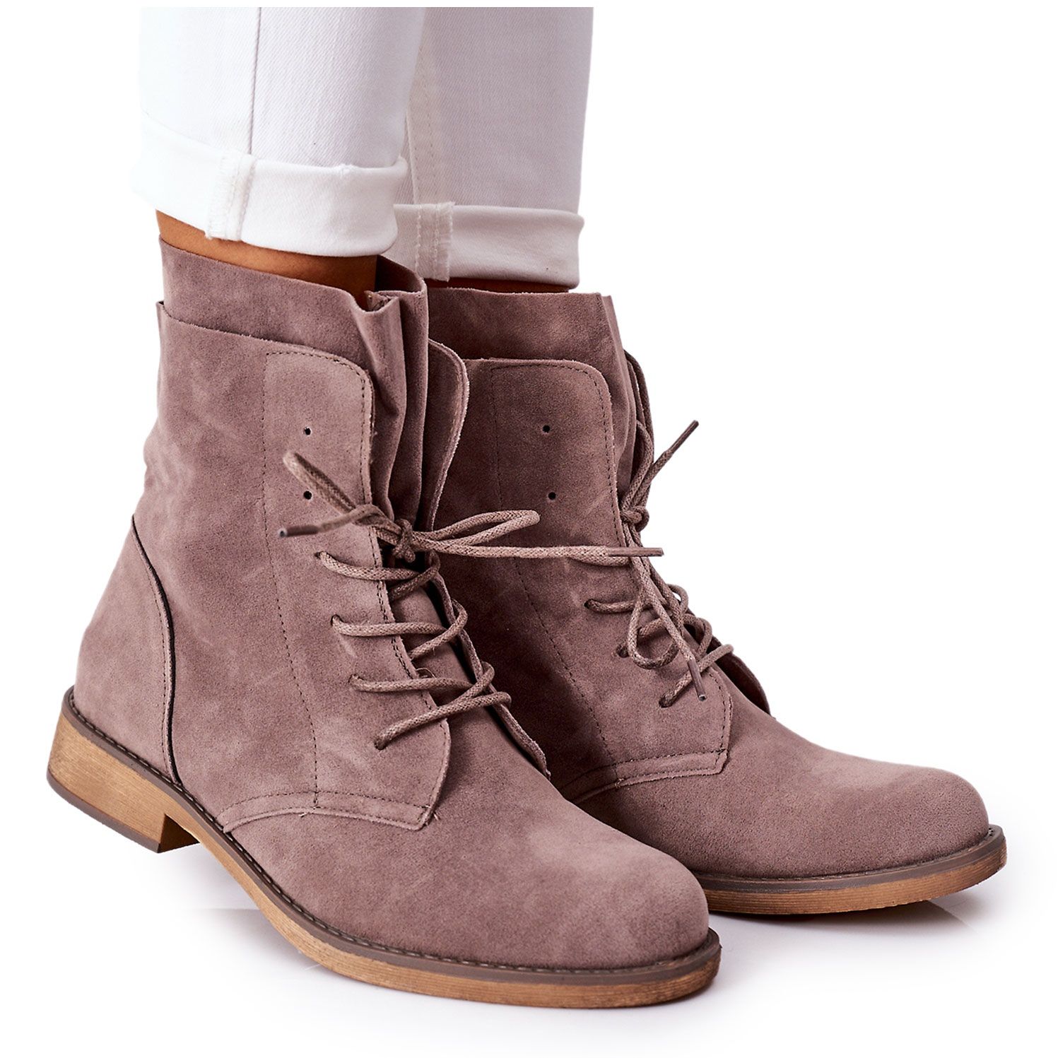 Cizmele au un toc plat de 3 cm, ceea ce le face confortabile pentru purtarea de zi cu zi, iar inaltimea superioara de 17,5 cm evidentiaza perfect linia gleznei si adauga lejeritate oricarui stil. Închiderea cu șireturi permite o potrivire perfectă pe picior, ceea ce mărește confortul la purtare.