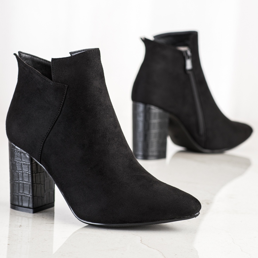Cizmele sunt confectionate din piele intoarsa ecologica de inalta calitate, care asigura nu numai estetica, ci si confortul la purtare. Culoarea lor neagră le face să se potrivească cu diverse stiluri, indiferent de ocazie. Călcâiul rigid și izolația garantează confort și stabilitate adecvată în timpul mersului.