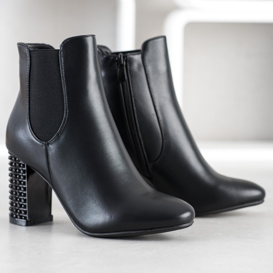 Botinele Kayla se remarca printr-un toc original de 8 cm inalt in forma de bloc, care adauga stil si farmec oricarui stil. Strasurile așezate pe călcâi sunt un accent subtil care atrage privirea și face ca acești pantofi să fie perfecti pentru ieșirile de seară sau sărbători.