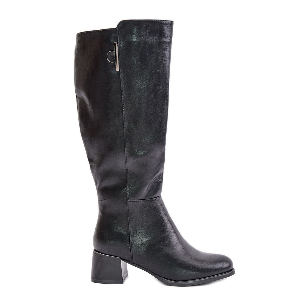 Detalii: Jezzi Cizme cu toc din piele ecologica peste genunchi, Izanae negre negru