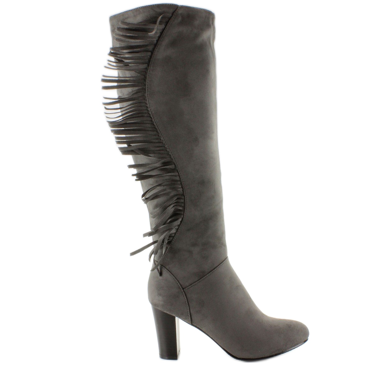 Inna marka Cizme cu toc inalt cu franjuri H615 Gri