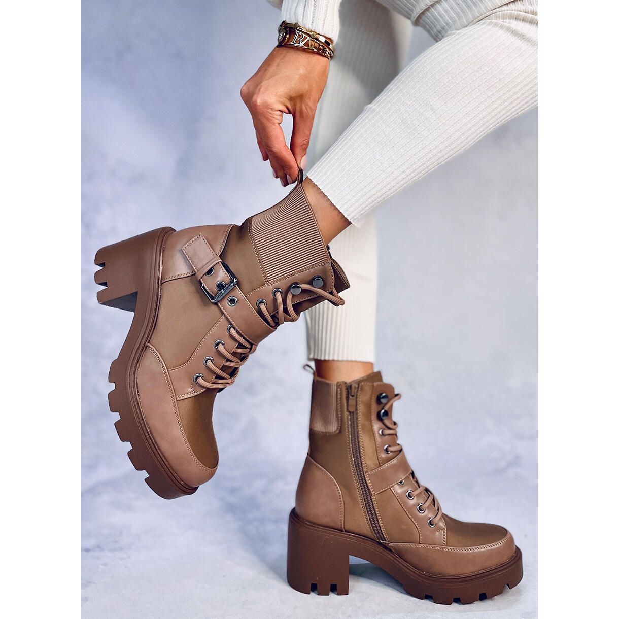 - Model: Botine cu șireturi cu toc înalt