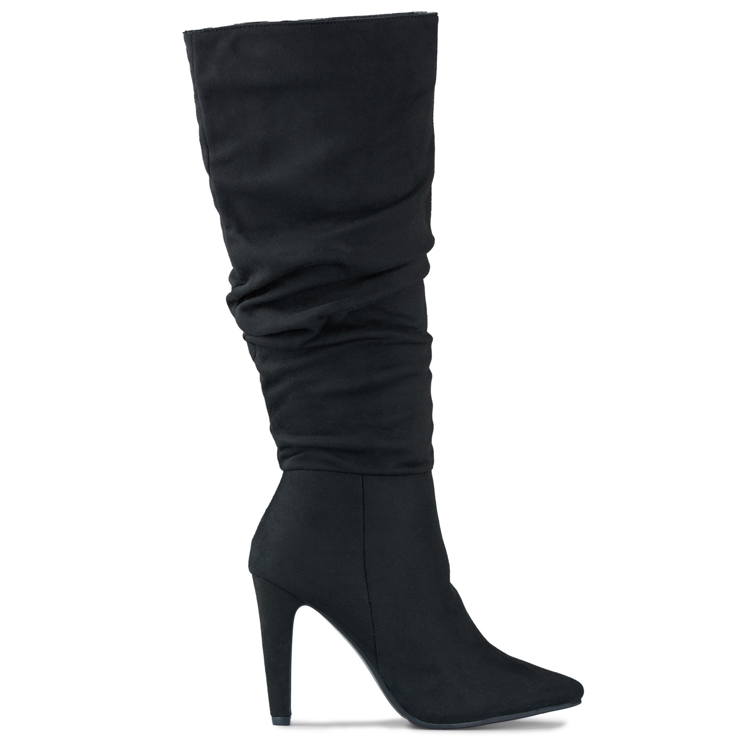 Detalii: Cizme cu toc înalt de damă din piele intoarsa neagra negru