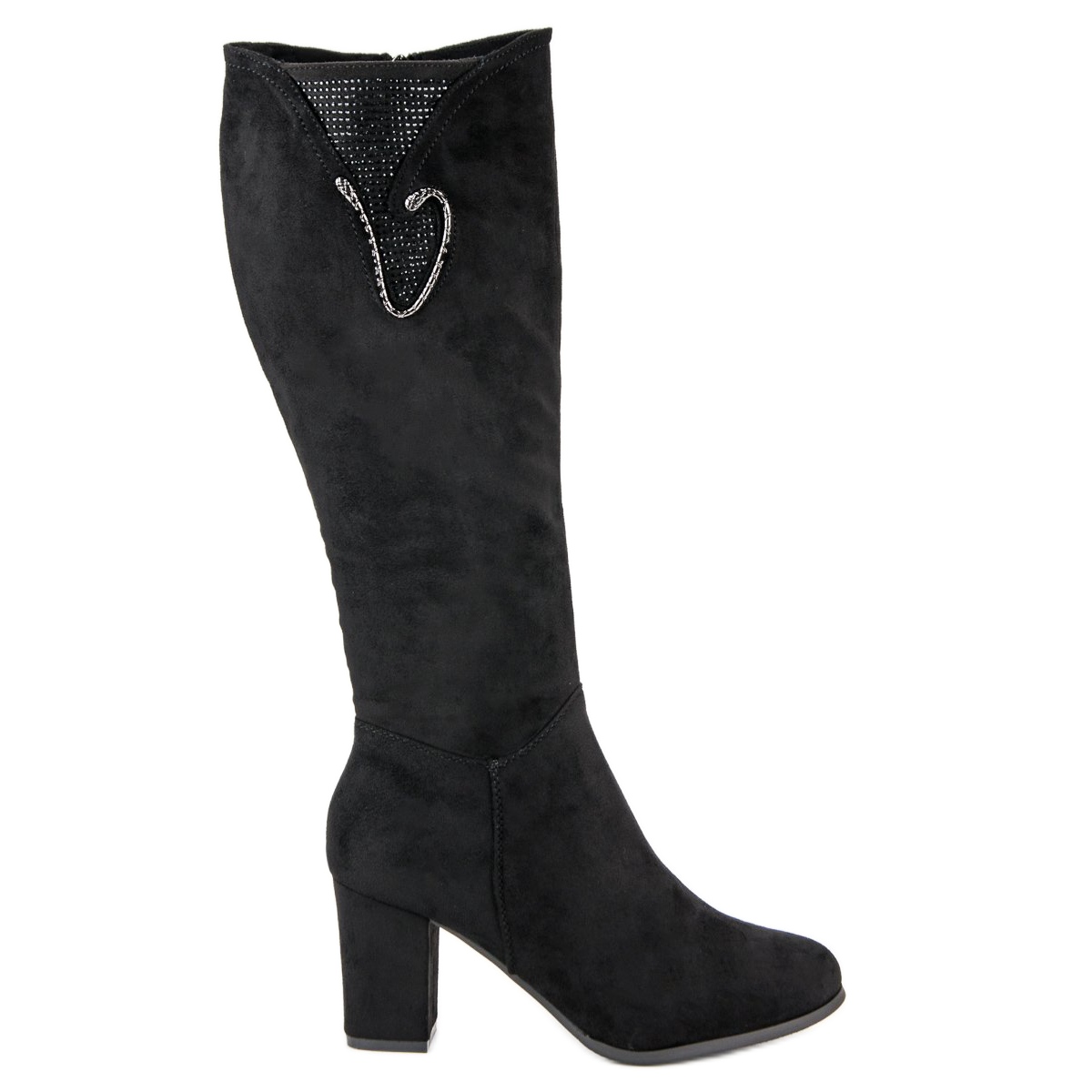 Detalii: Cizme cu toc înalt din piele de căprioară negru
