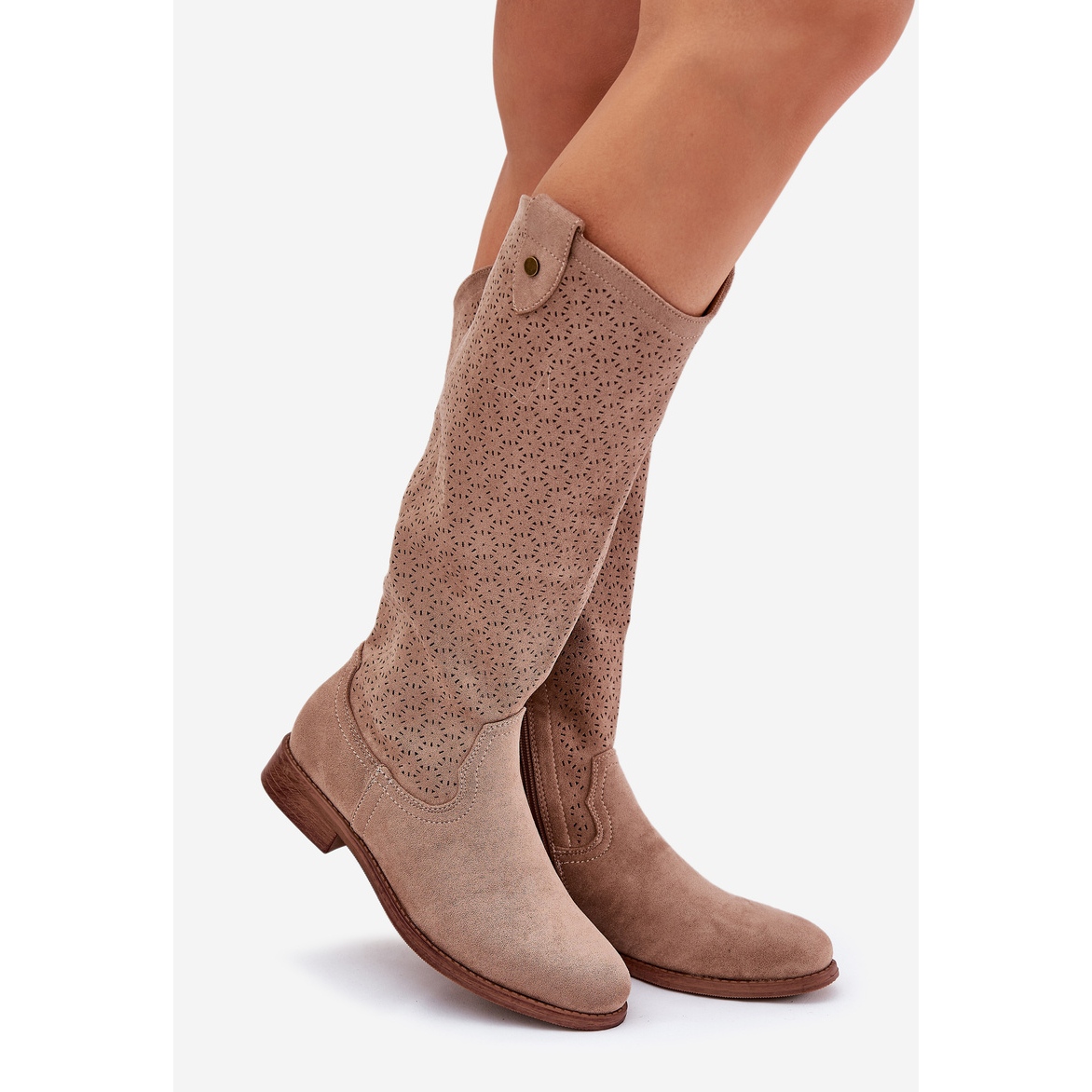 S.Barski Cizme cu toc plat cu un model deschis S.BARSKI HY51-062 BEIGE bej