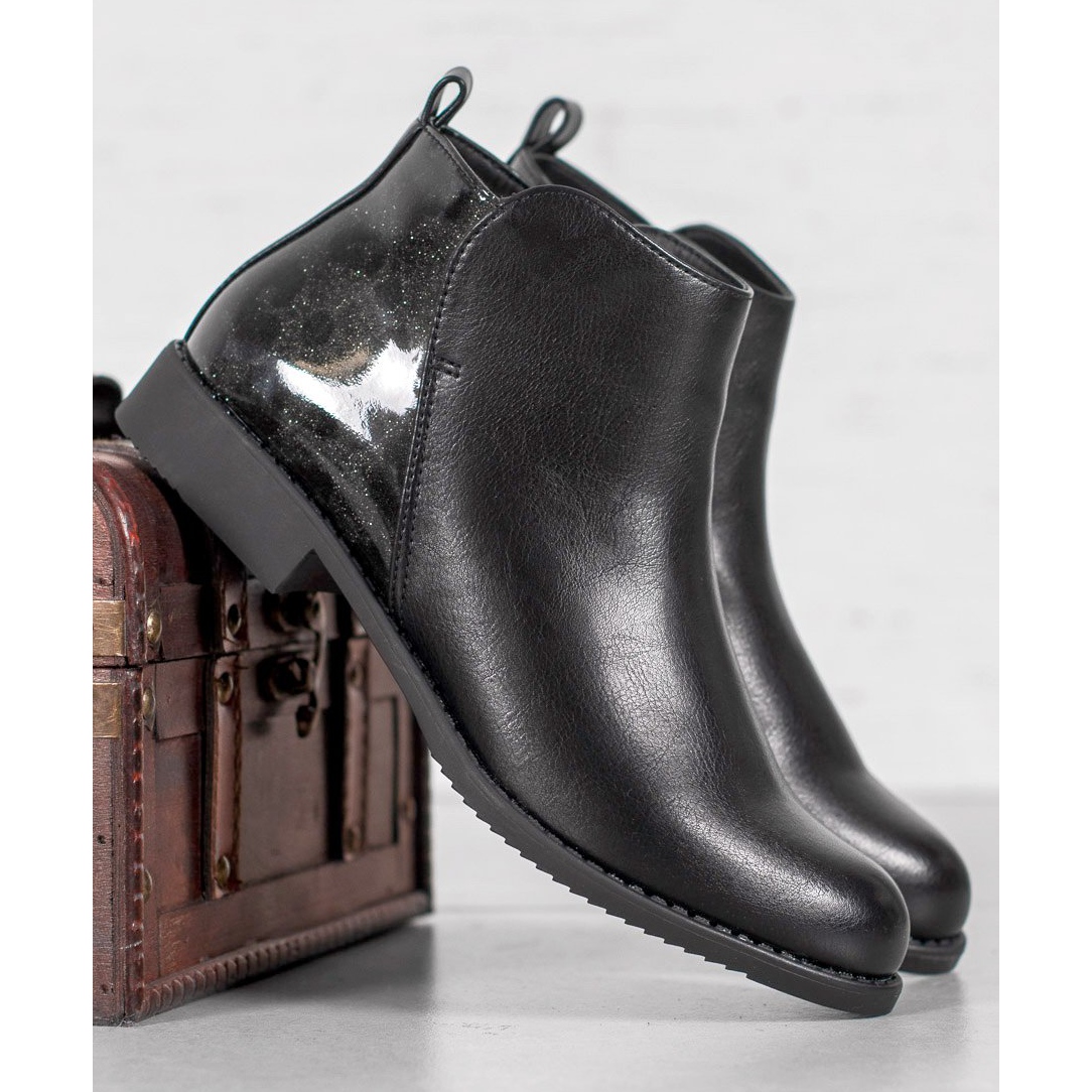 Partea superioară din spate, ajungând deasupra gleznei, este decorată eficient cu sclipici, ceea ce conferă pantofilor un caracter unic. Datorita fermoarului din interior, incaltarea si scoaterea pantofilor este extrem de simpla si confortabila. Un vârf rotund și un toc lat și stabil de 2,5 cm fac ghetele perfecte pentru plimbări mai lungi.