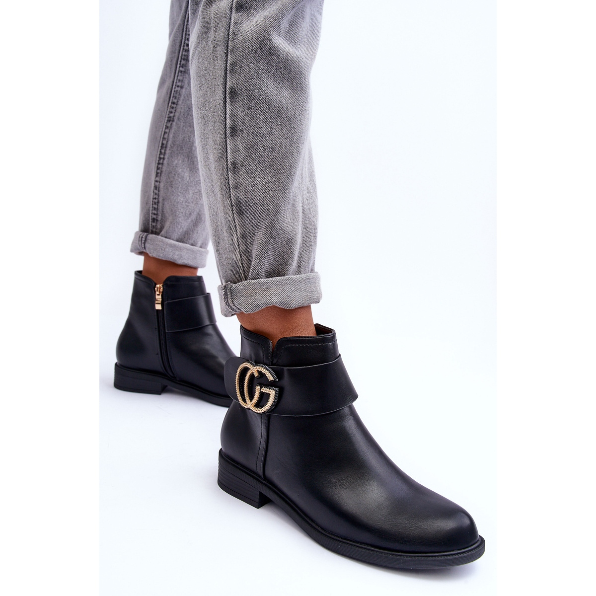 Cizmele elegante, negre FD1 din piele ecologică, este un model universal pentru sezonul de toamnă/iarnă. Set pe un călcâi scăzut, stabil (3 cm), cu o platformă ușoară (1 cm), cu nas rotunjit și o curea decorativă - vor adăuga stil la stilizări de zi cu zi și mai multe de ieșire. Electul de fixare a fermoarului din interior face mai ușor de pus.