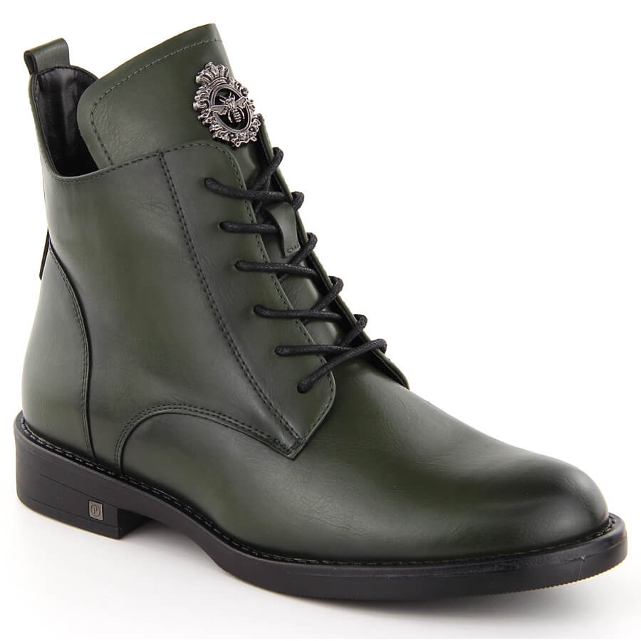 Detalii: Cizme damă cu șireturi și fermoar, verde Potocki SZ12179