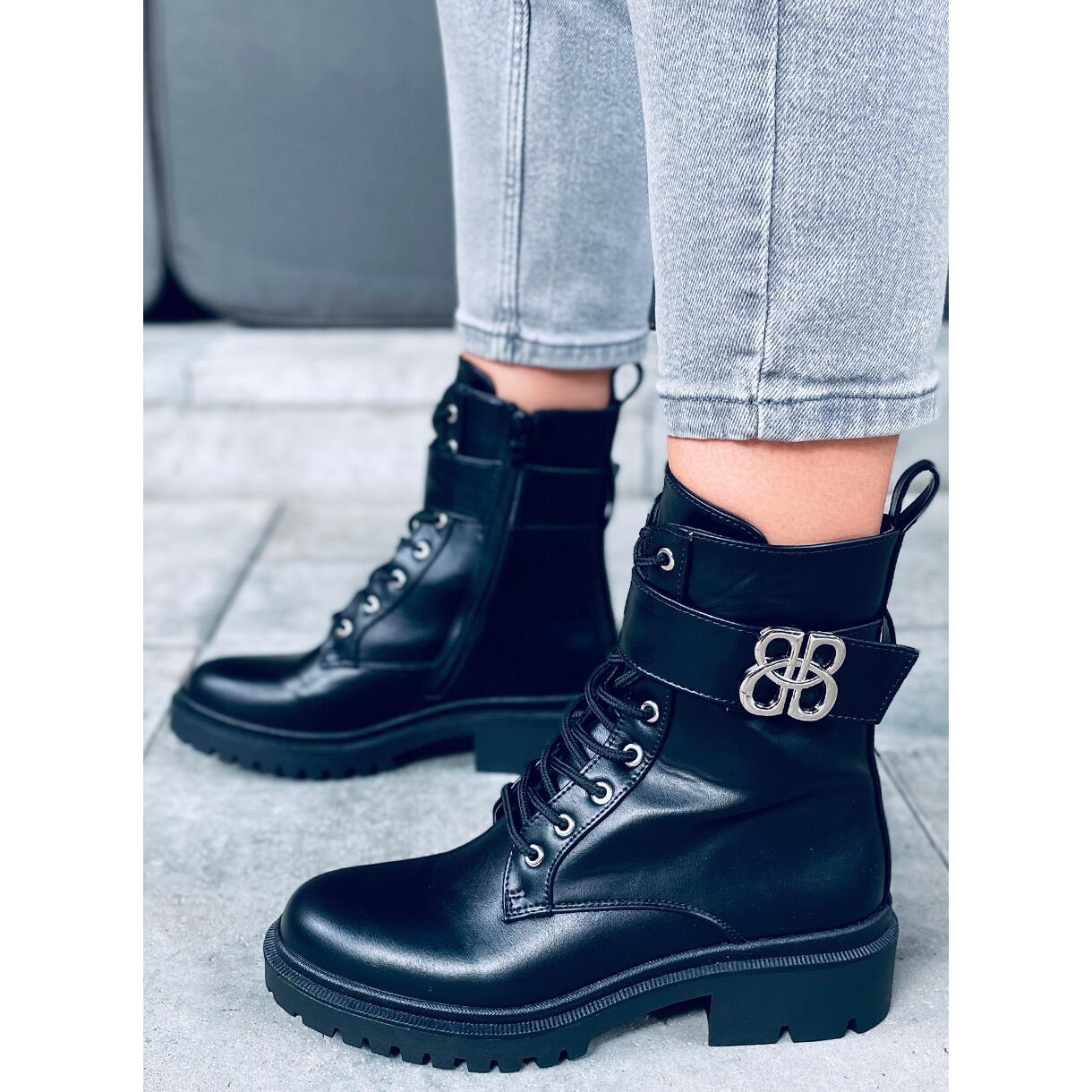 Descoperă stilul și confortul cu cizmele bovver de damă Gilmo Black! Aceste botine cu design extrem de la modă combină estetica militară cu stilul modern, oferind ținutelor tale de zi cu zi un caracter unic. Finisajul negru și neted face ca acești pantofi să se potrivească perfect cu o varietate de stiluri - de la casual la mai elegant.