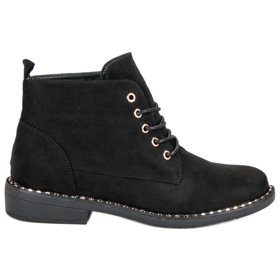 Va prezentam botine de dama elegante si confortabile de la renumitul brand Sergio Todzi. Modelul este din piele intoarsa neagra, ecologica, ceea ce il face prietenos cu mediul si in acelasi timp extrem de stilat. Aceste botine cu siret se potrivesc perfect stilului casual si clasic, perfecte pentru fiecare femeie, indiferent de varsta.