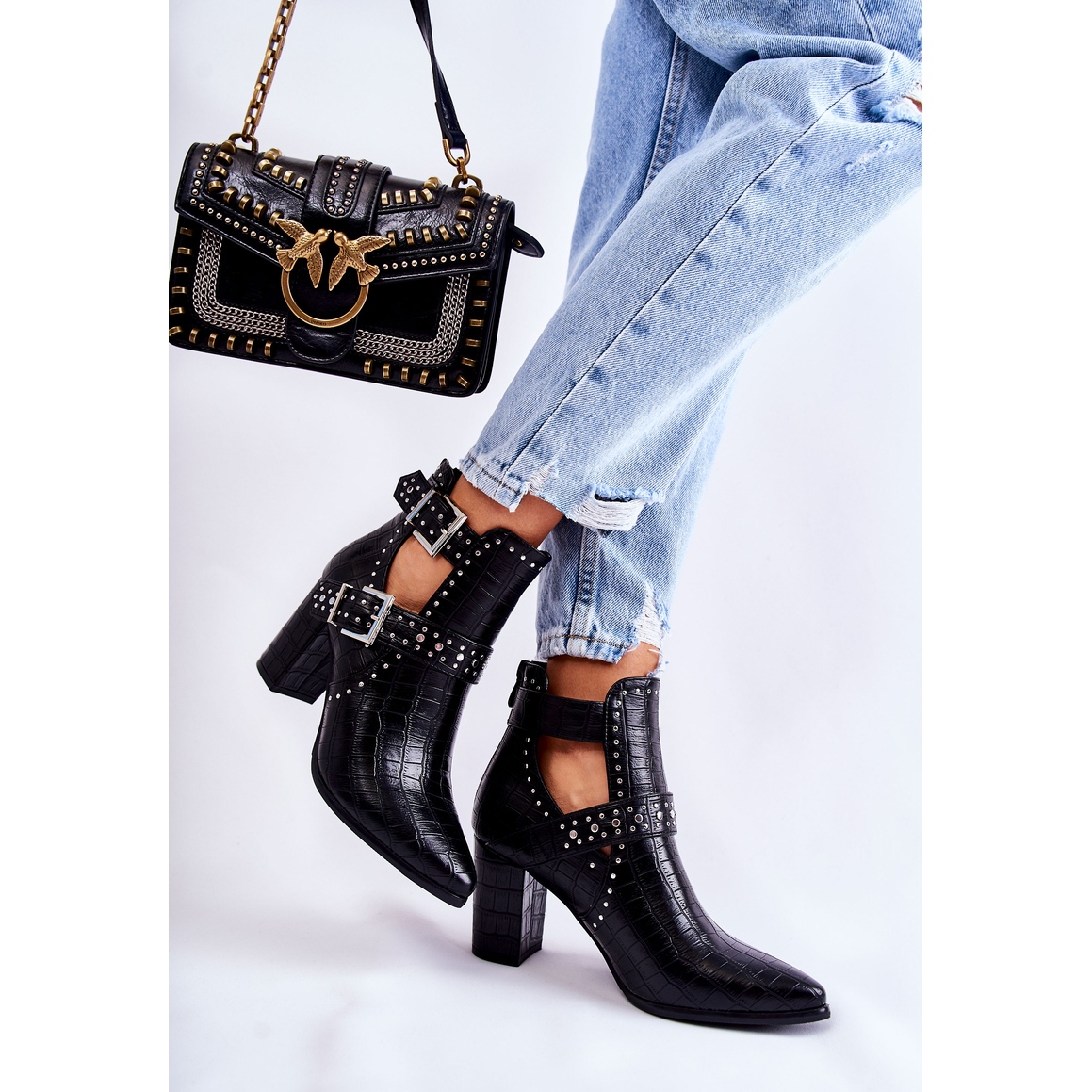 Decupaje pe laterale și strasuri decorative adaugă caracter, iar fermoarul din spatele căptușelii facilitează încălțarea și scoaterea pantofilor. Fabricate din piele ecologică de înaltă calitate, botinele nu sunt doar elegante, ci și ecologice.