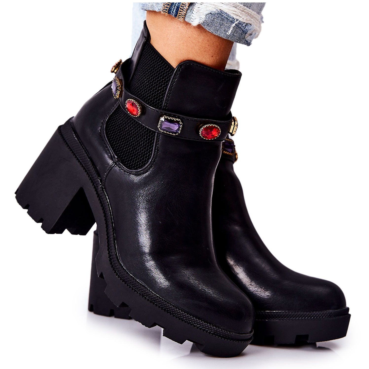 Detalii: PS1 Cizme Damă Piele Pe Toc Cu Cristale Negre Macbeth negru