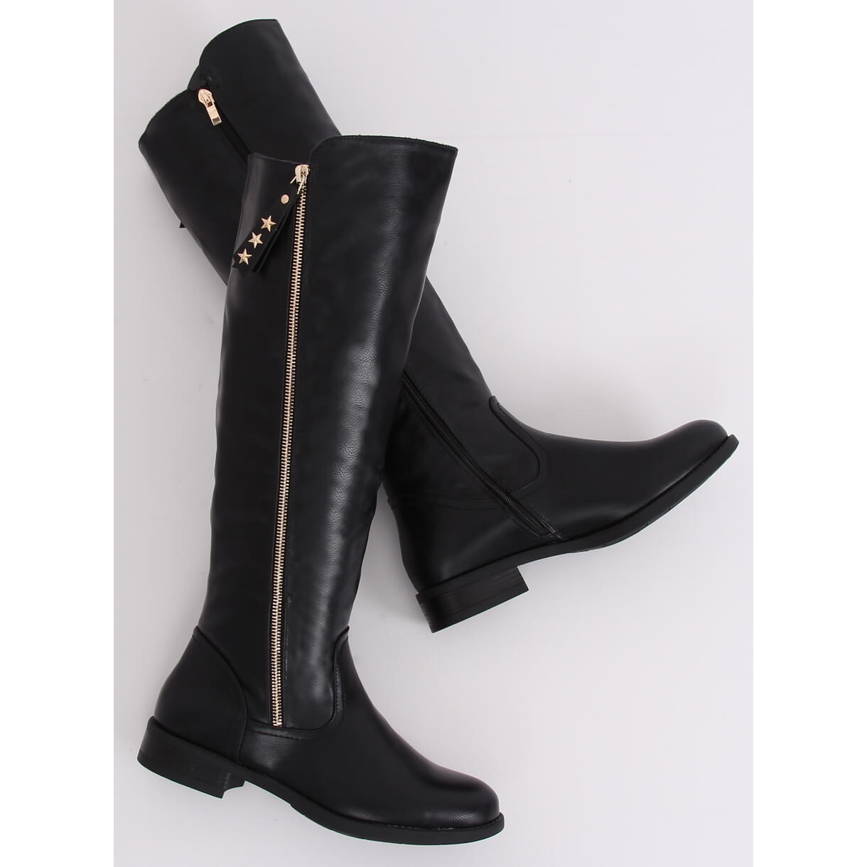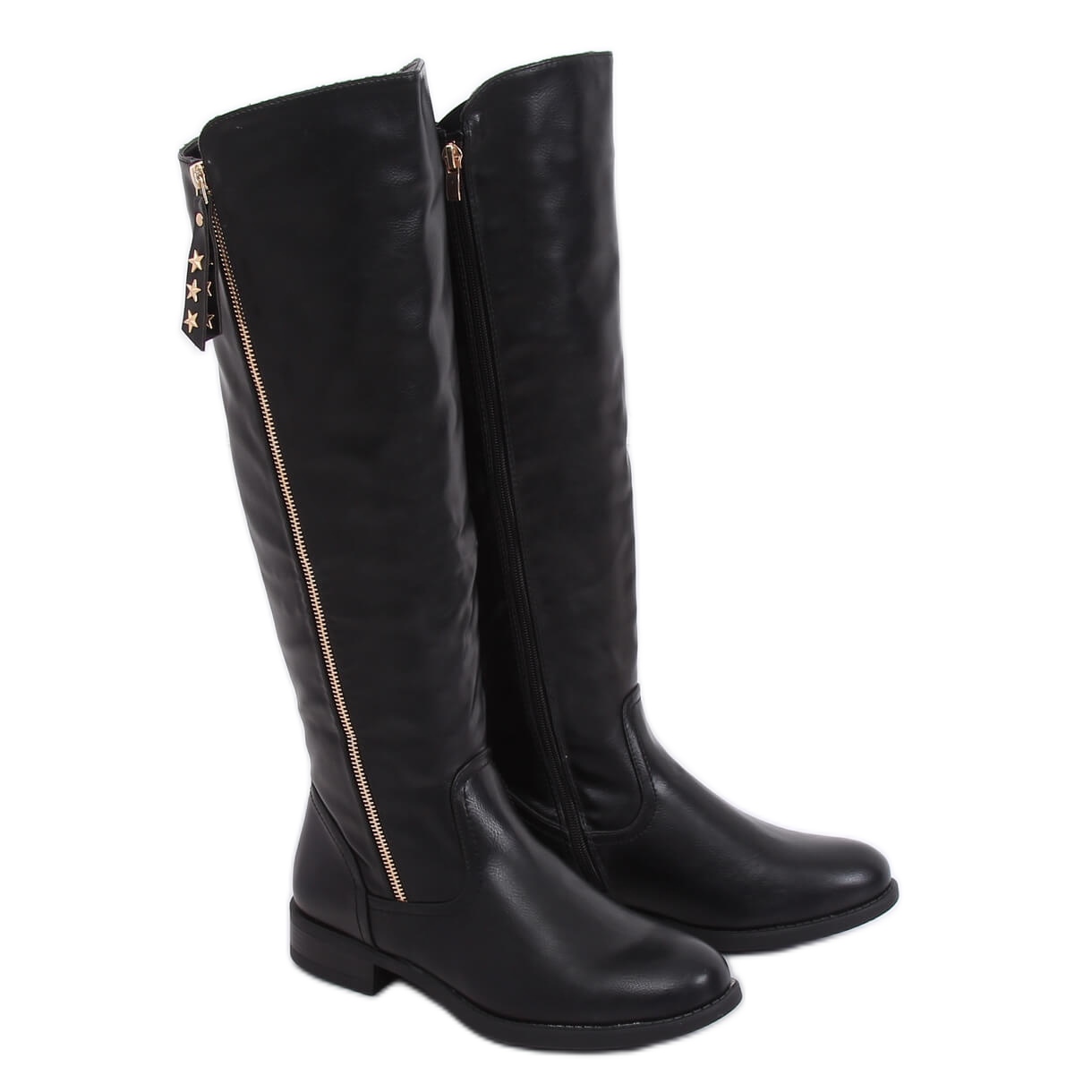 Cizmele negre de dama MR-6 Black sunt o alegere perfecta pentru toate femeile care apreciaza un stil la moda si confortabil. Aceste cizme elegante cu toc plat incanta cu o parte superioara atent proiectata, care se remarca printr-un fermoar decorativ auriu si un pandantiv cu stea, conferindu-le un caracter unic.