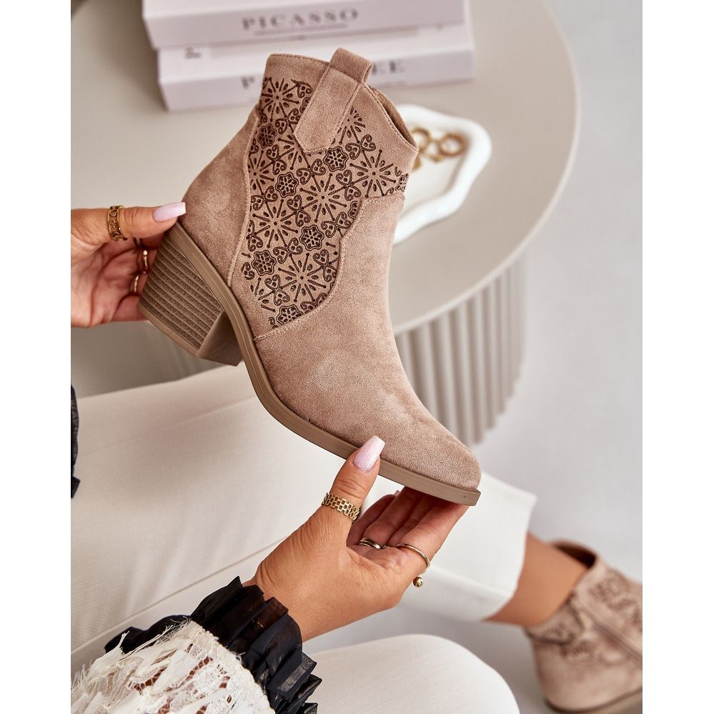 Detalii: Cizme de cowboy ajurate cu fermoar din piele intoarsa ecologica bej S.Barski HY42-944