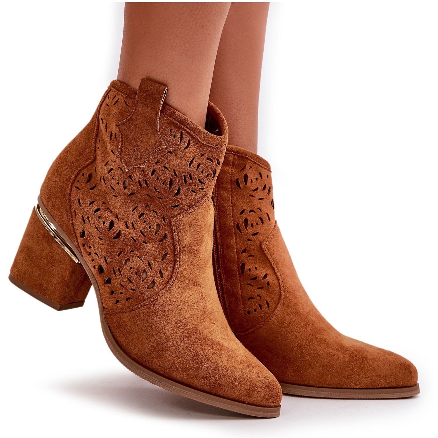 Detalii: Cizme de cowboy ajurate, cu toc inalt, prinse cu fermoar camel Vosilara maro