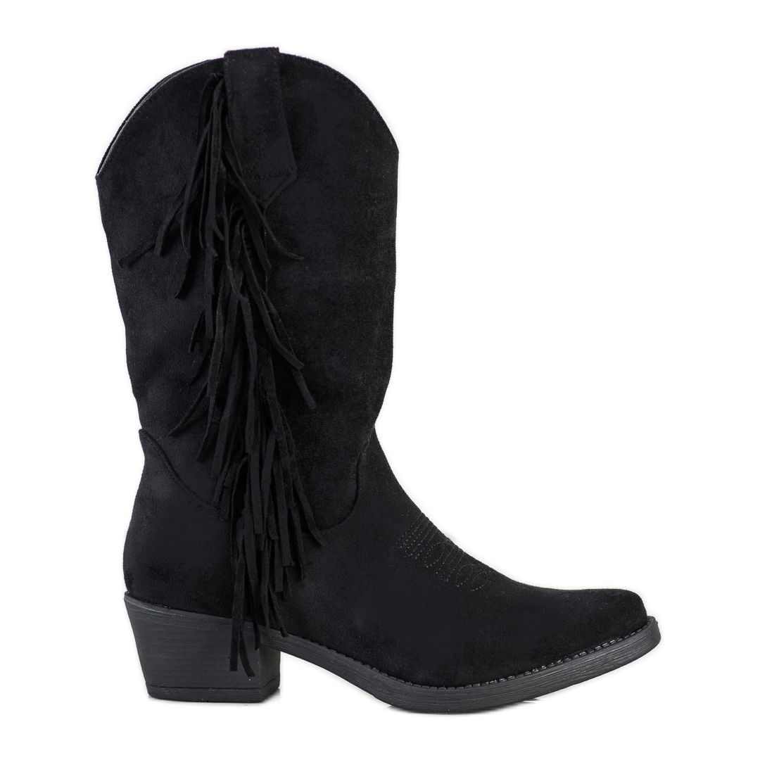 Diamantique Diamantique Cizme de cowboy cu franjuri negru