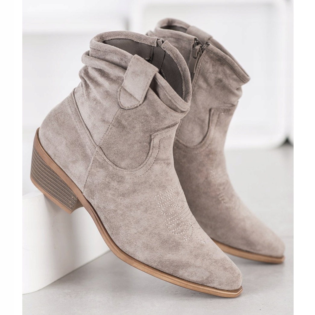 Cizmele de cowboy au varf rotund si partea superioara cu fermoar inaltime de 11-12 cm, ceea ce asigura confortul la purtare. Un bloc stabil de 5 cm înălțime le face perfecte atât pentru blugi, cât și pentru rochii. În plus, izolația interioară va oferi căldură în zilele mai reci, iar călcâiul încorporat, rigid, adaugă încredere în pasul tău.