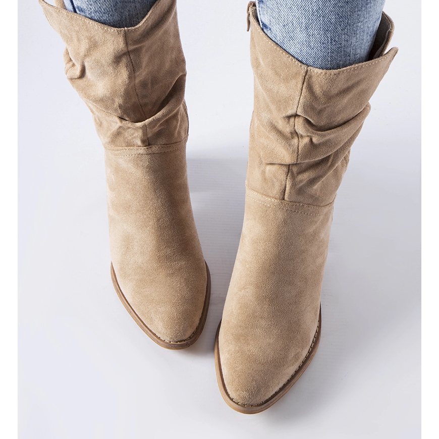 Cizmele elegante, calde și confortabile - Cizmele de cowboy Filomena sunt alegerea perfectă pentru sezonul de toamnă. Fabricat din piele de piele de căprioară ecologică într -o nuanță bej (numele producătorului: Kaki), acestea combină o tăietură clasică de cowboy cu stil urban contemporan.