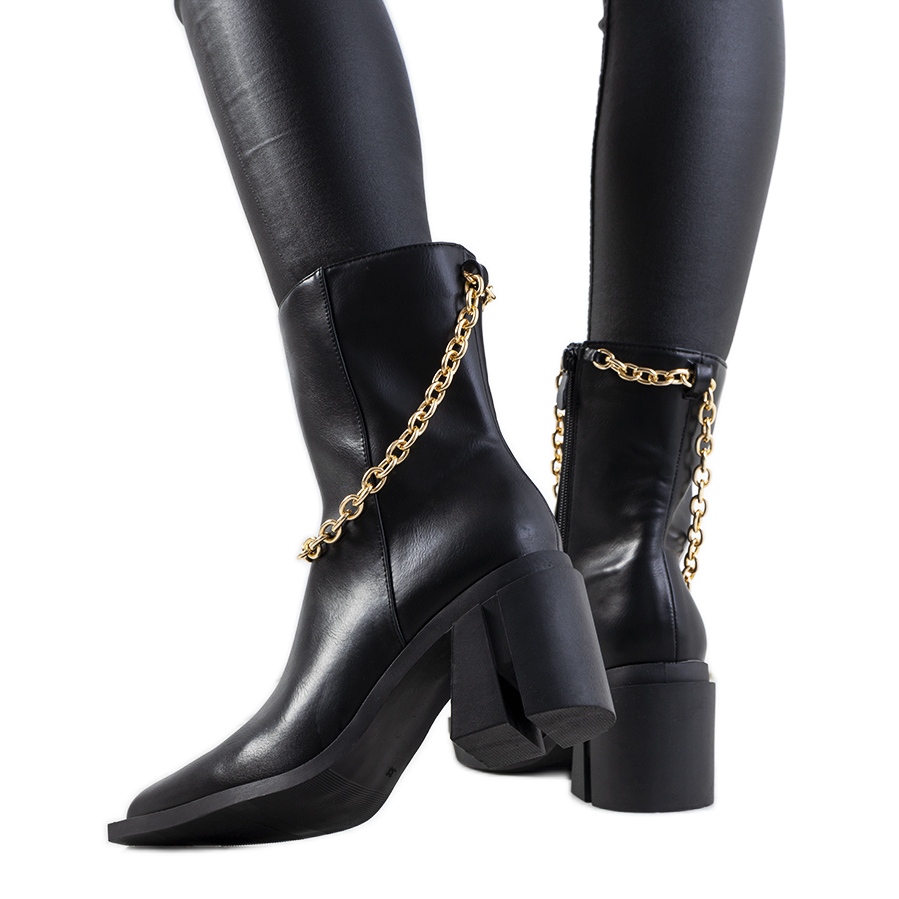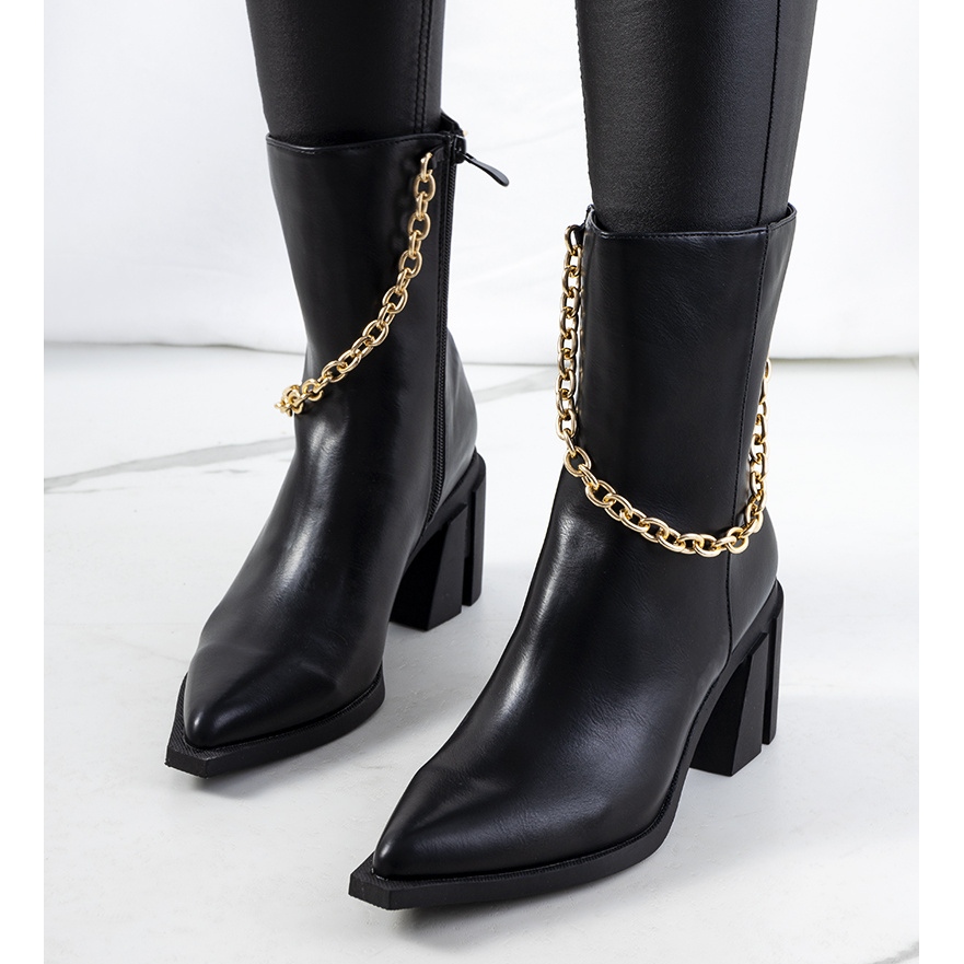 Varful ascutit caracteristic si partea superioara montata cu un lant subtil subtiaza optic picioarele, facand fiecare femeie sa se simta atractiva si increzatoare in ele. Datorită tălpii de cauciuc, încălțămintea nu este doar stilată, ci și funcțională, asigurând aderență și confort în timpul purtării. Inaltimea pantofilor ajunge deasupra gleznei, iar tocul de 7,5 cm adauga clasa si farmec.