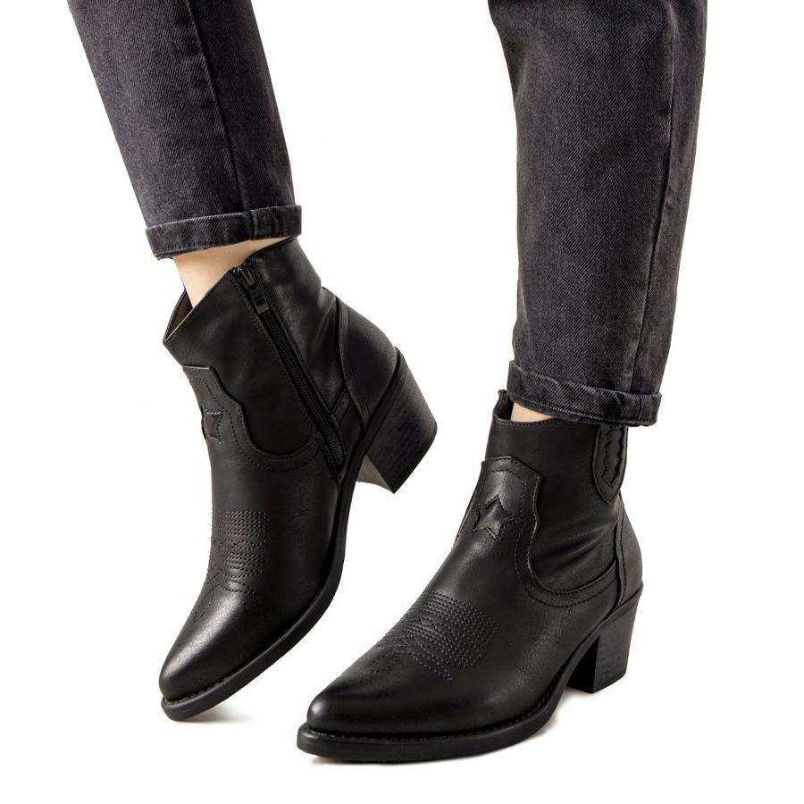 Detalii: Cizme de cowboy negre cu model Mustgrow brodat negru