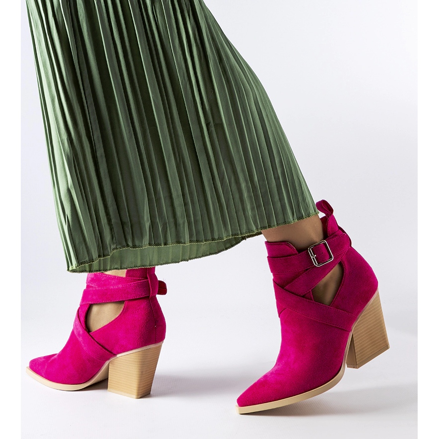 Va prezentam cizme de cowboy roz decorate cu decupaje Duclos - cizme de dama unice care imbina designul modern cu functionalitatea si stilul. Confectionate din piele intoarsa de calitate superioara, aceste cizme de cowboy se remarca prin varf ascutit si o partea superioara care ajunge sus deasupra gleznei, ceea ce le face sa puna in evidenta perfect silueta feminina.