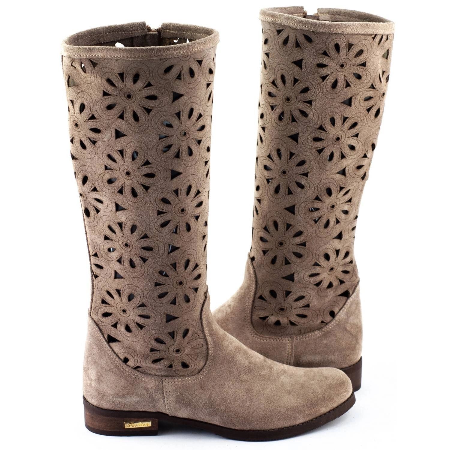 Detalii: Olivier Cizme de damă ajurate cu flori, bej închis