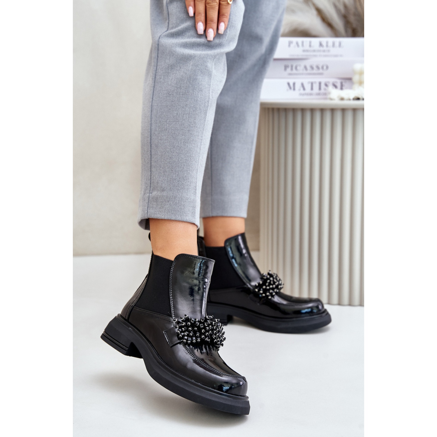 Detalii: Cizme de dama cu decor 24BT15-7453 negre negru