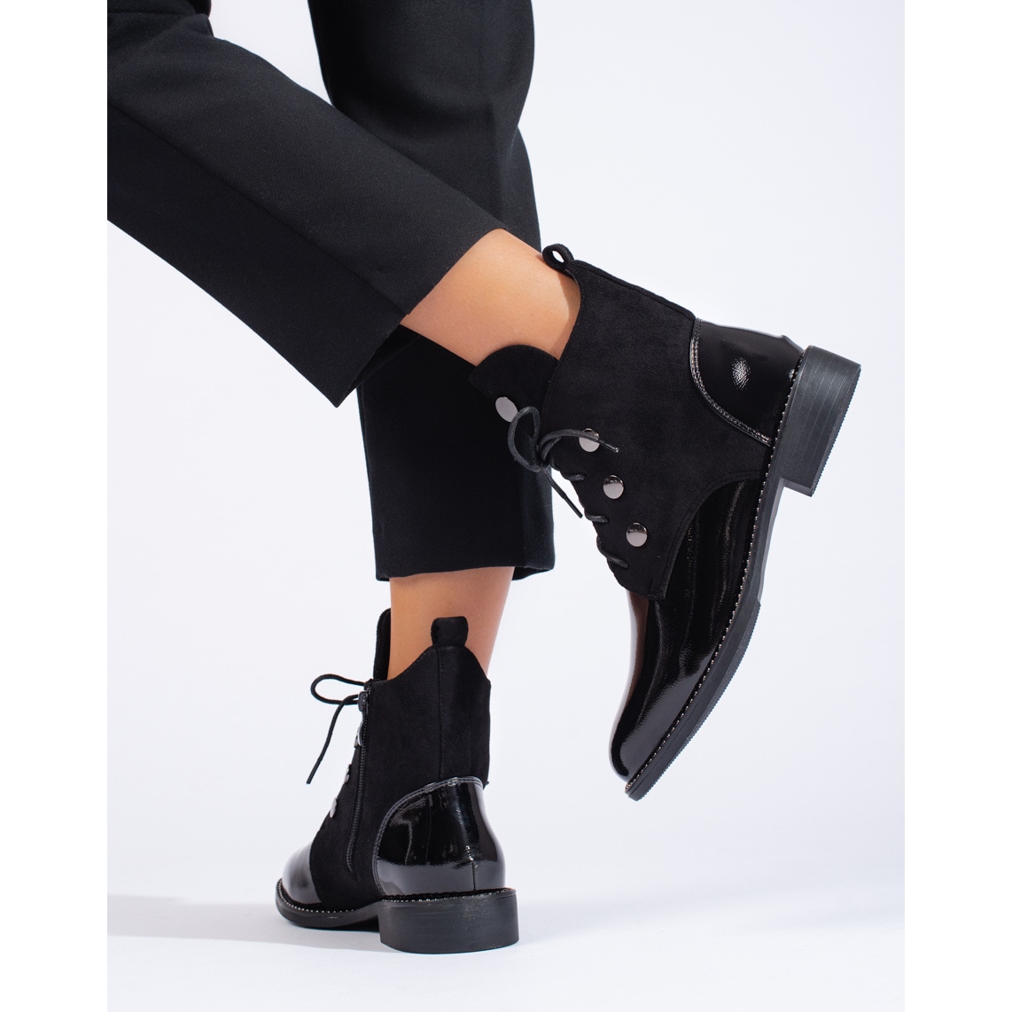 Cizme pentru femei cu degetele plate - negru, lăcuit, izolat