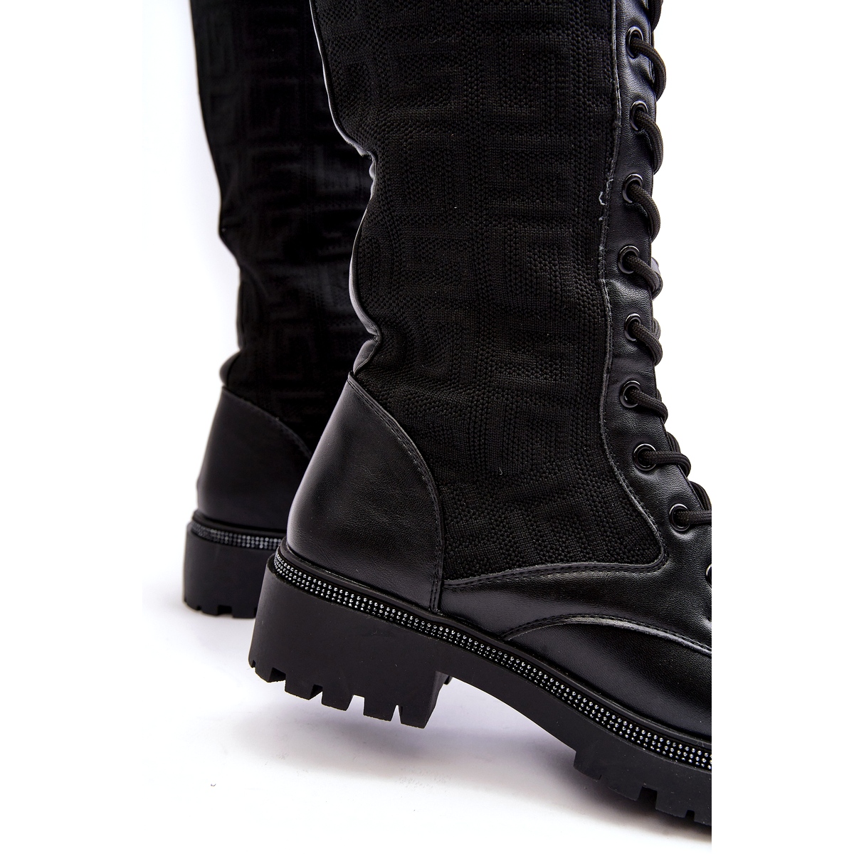 Detalii: Cizme De Dama Cu Sireturi Cu Parte Superior Elastica Neagra Virxinia negru