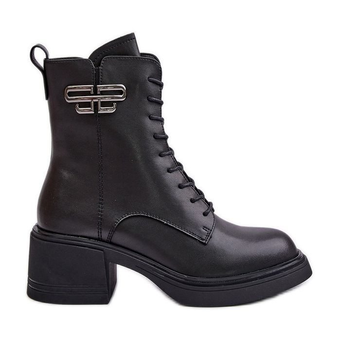 Cizme pentru femei pe un călcâi masiv izolat din piele naturală. Black Vinceza 66682 este o propunere ideală pentru femeile care caută încălțăminte elegantă și confortabilă în zilele mai răcoroase. Fabricate din piele naturală de înaltă calitate, acești pantofi nu numai că arată excelent, dar asigură și confortul de a purta datorită încălzirii calde, ceea ce protejează eficient picioarele de frig.