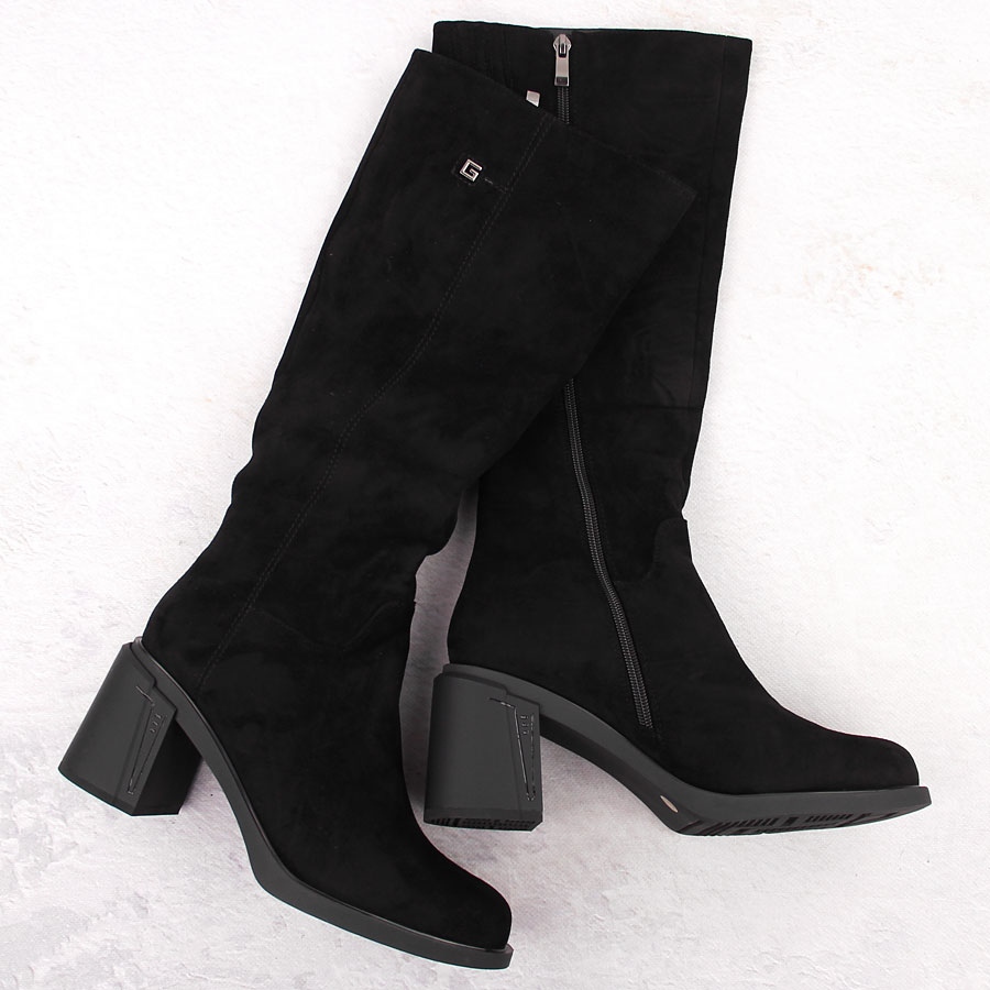 Detalii: Cizme de damă cu toc înalt din piele intoarsa, negre, Potocki 60314 negru