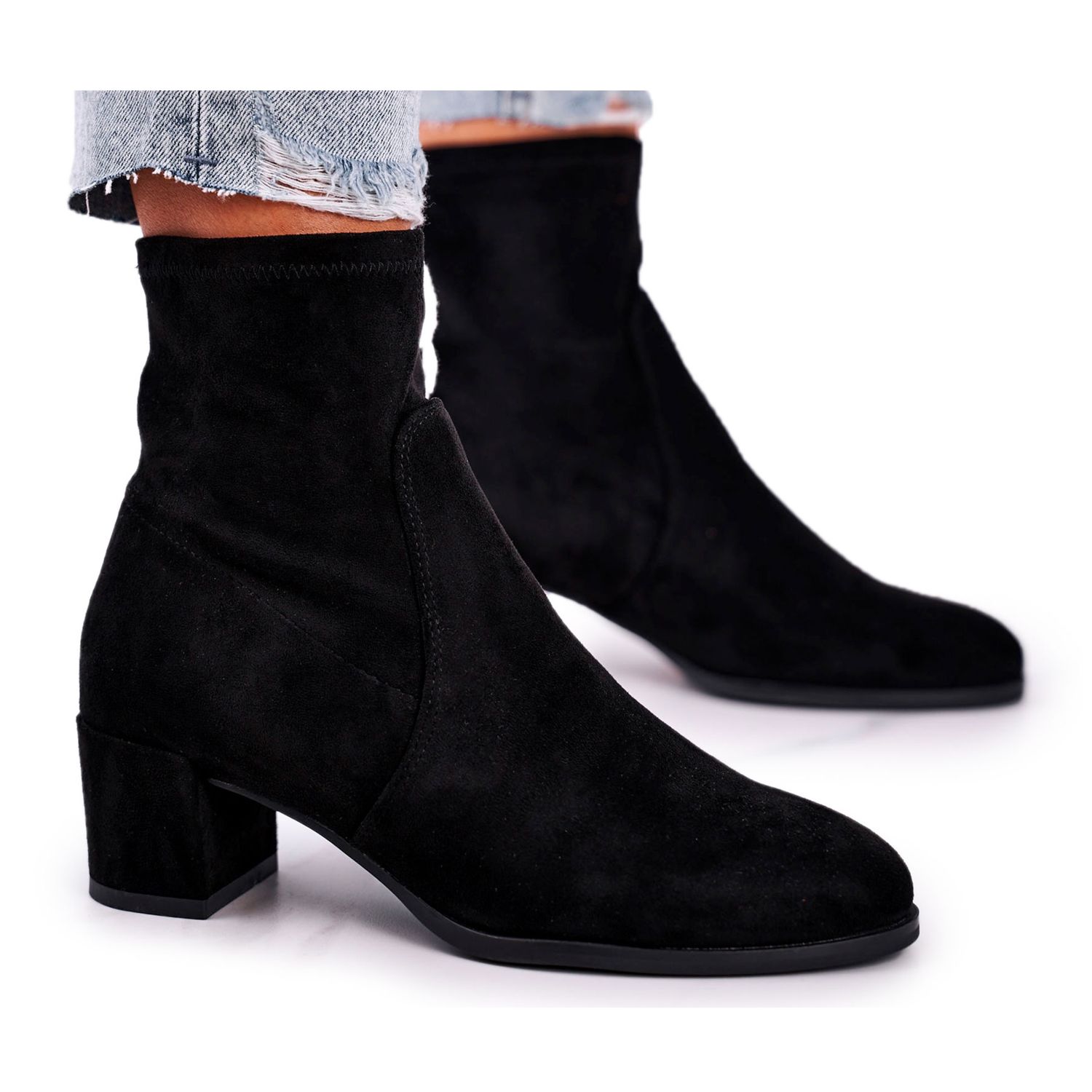 Ghetele de dama cu toc inalt Sergio Leone Black BT151 sunt alegerea perfecta pentru zilele de toamna, imbinand stilul si confortul. Acești pantofi eleganți se caracterizează printr-un toc delicat de 5 cm înălțime care ridică subtil silueta, făcând-o mai subțire. Confecționată din piele ecologică neagră de înaltă calitate, suprafața de piele de căprioară le oferă un aspect luxos.