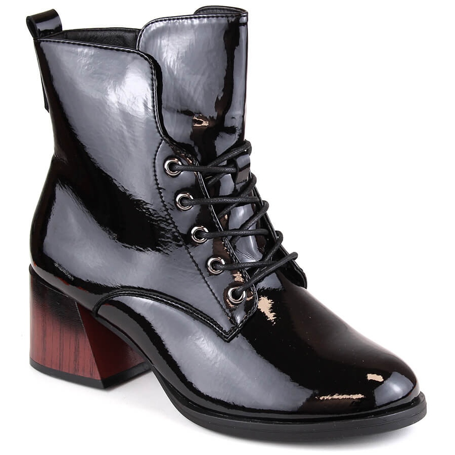 Detalii: Cizme de damă cu toc izolat din piele lăcuită, negre Vinceza 58127 negru