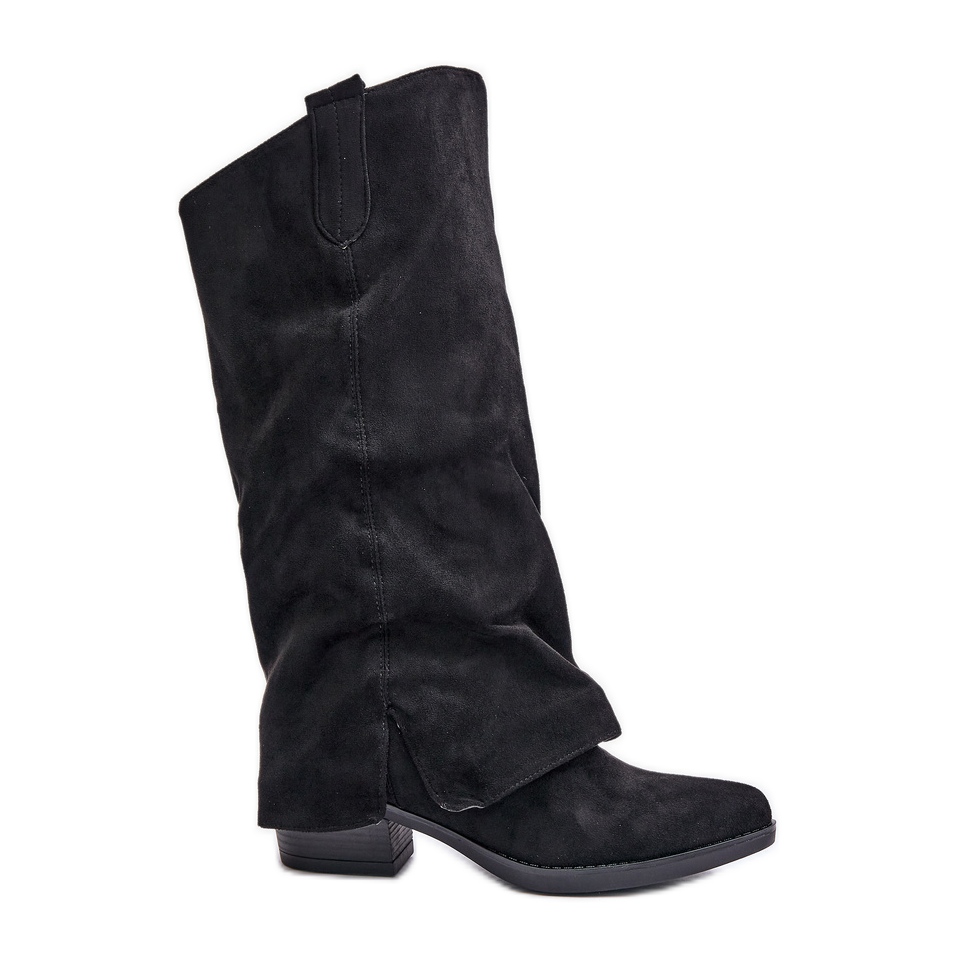 Jezzi Jezzi Cizme de damă cu toc mic, cu partea superioară întoarsă, negre, Stinova negru