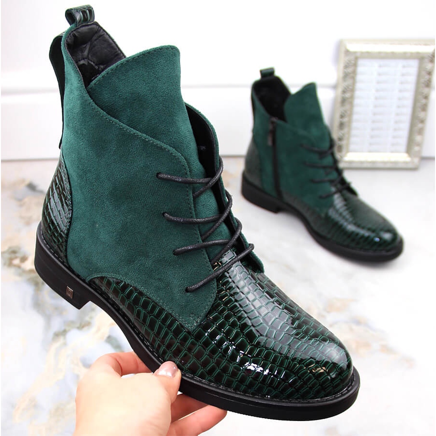 Detalii: Cizme de dama cu toc plat, izolate, verde Potocki SZ12080