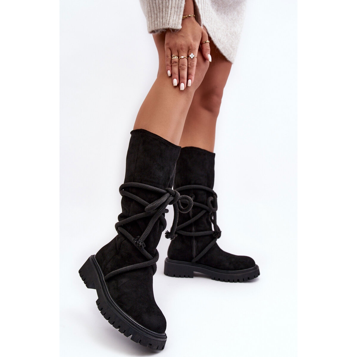 Produs: PS1 Cizme pentru femei din piele de căprioară cu legare - negru. Comandați acum și bucurați -vă de confortul și stilul acestei propuneri de toamnă și de iarnă.
