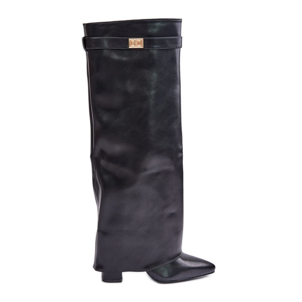 Detalii: Cizme de damă din piele ecologică cu toc întors, negru Avamora