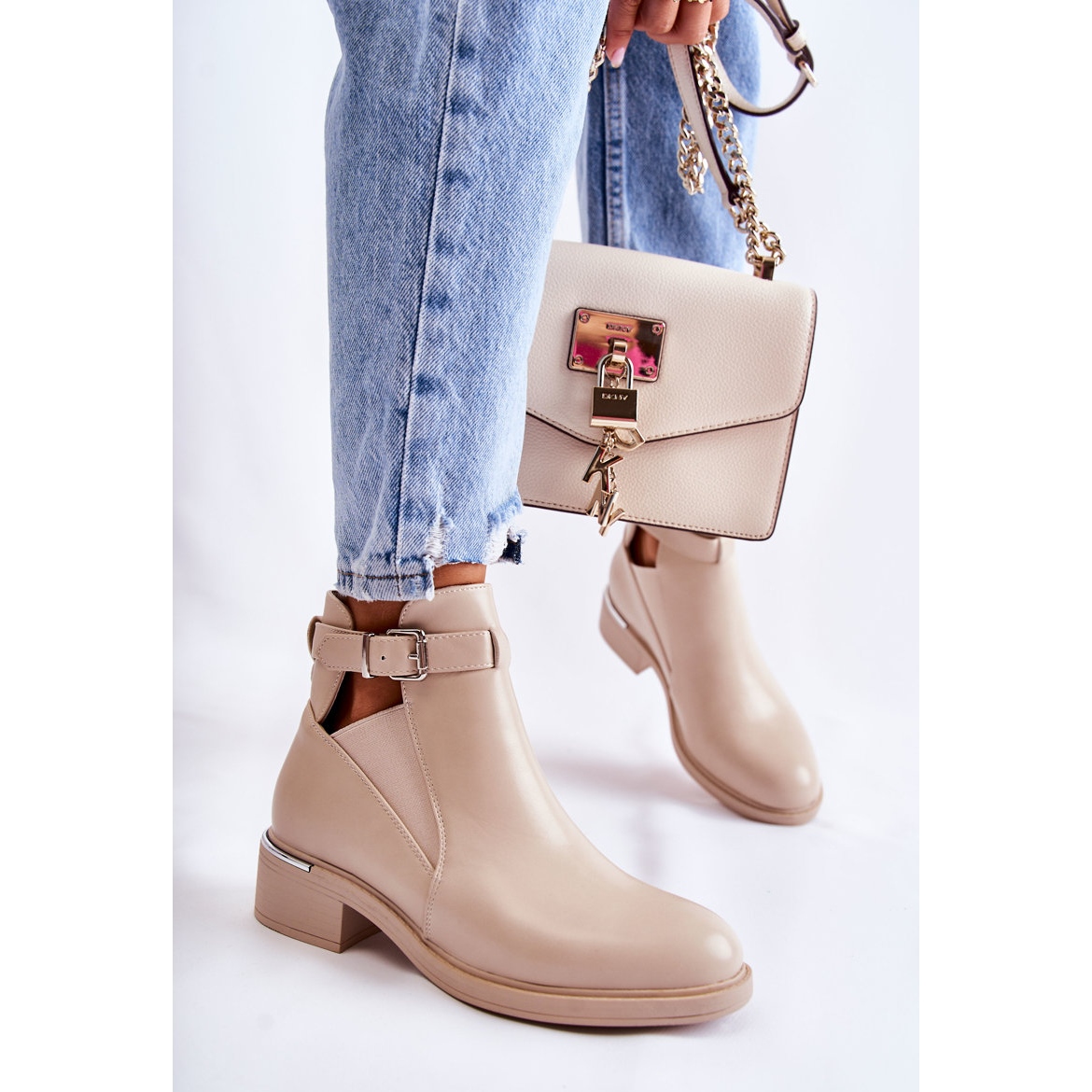 Tocul plat înalt de 4 cm le face nu numai confortabile, ci și stilate. Călcâiul rigid și branțul din material adaugă durabilitate și stabilitate, în timp ce închiderea cu cataramă și cureaua cu apăsare oferă opțiuni suplimentare de stil. Datorită culorilor lor neutre, aceste botine bej se vor potrivi în orice garderobă, creând combinații perfecte cu o varietate de ținute - de la cele de zi cu zi la cele mai elegante.