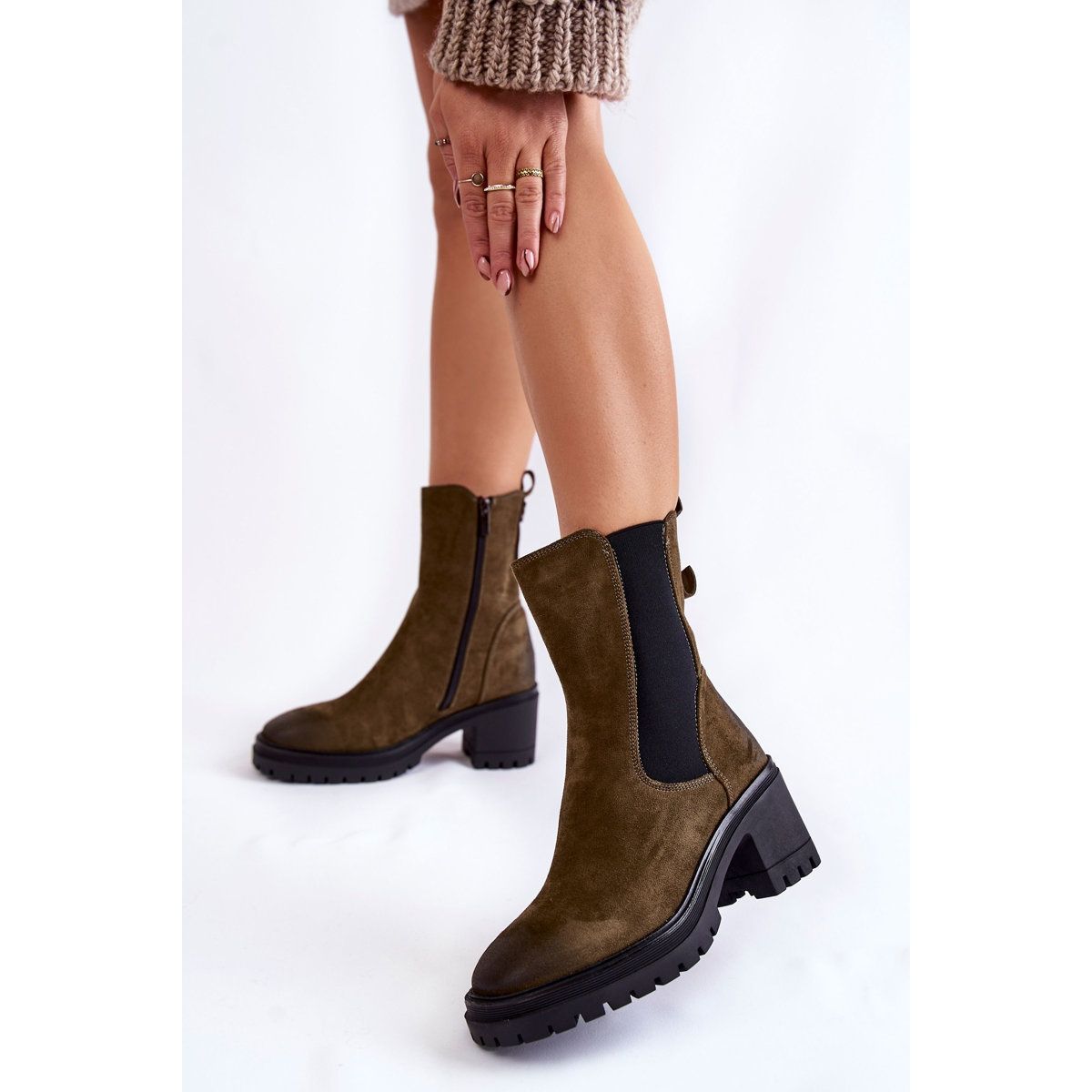 Detalii: Vinceza Cizme de dama din piele intoarsa cu fermoar Liris verde