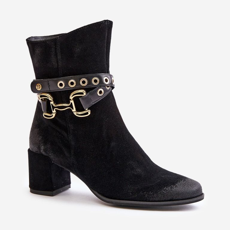 Maciejka Cizme de damă din piele intoarsa cu toc inalt cu curea decorativa Maciejka 06679-01 negru