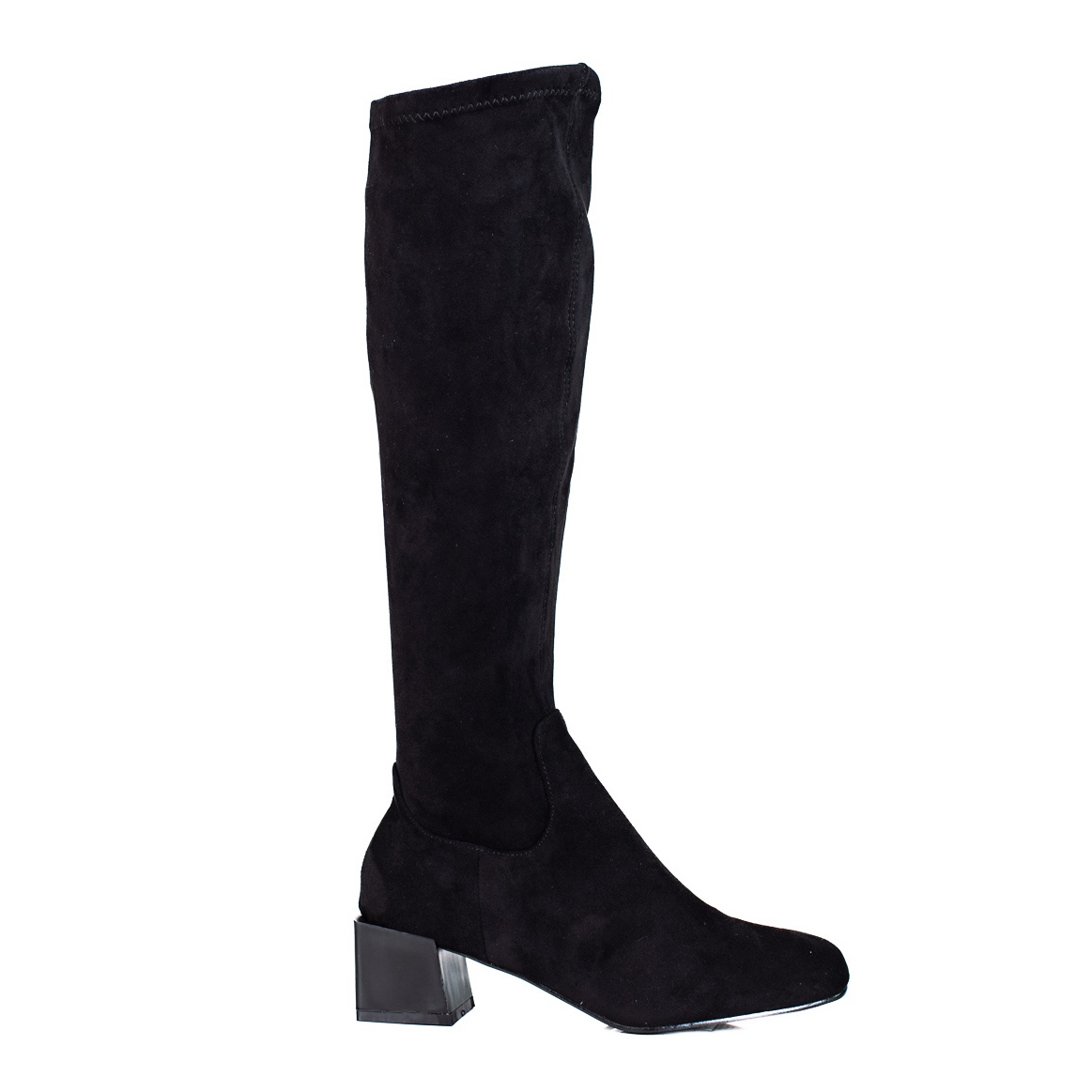 T.Sokolski T.Sokolski Cizme de dama din piele intoarsa neagra pe un post lat de la Sokolski negru